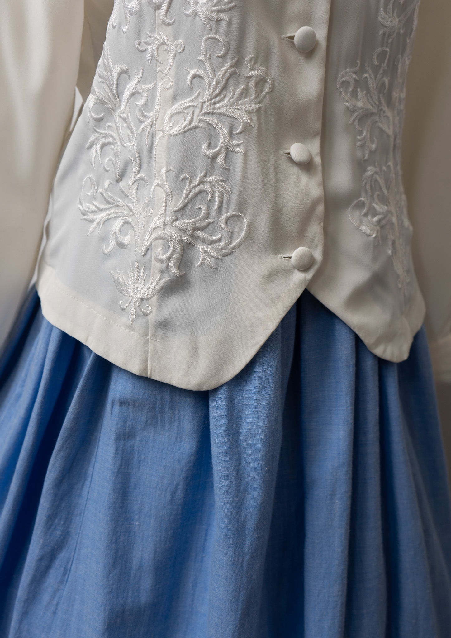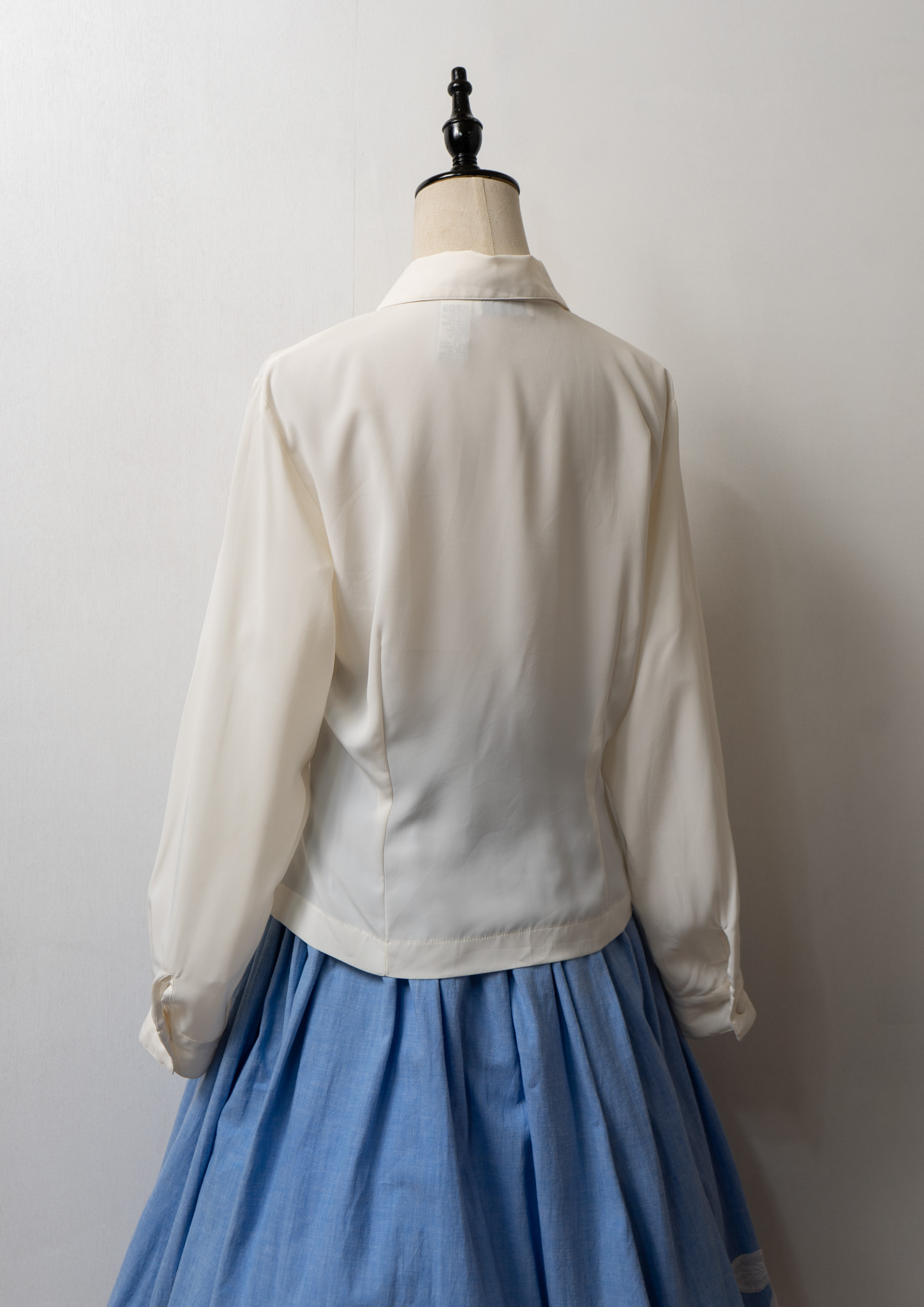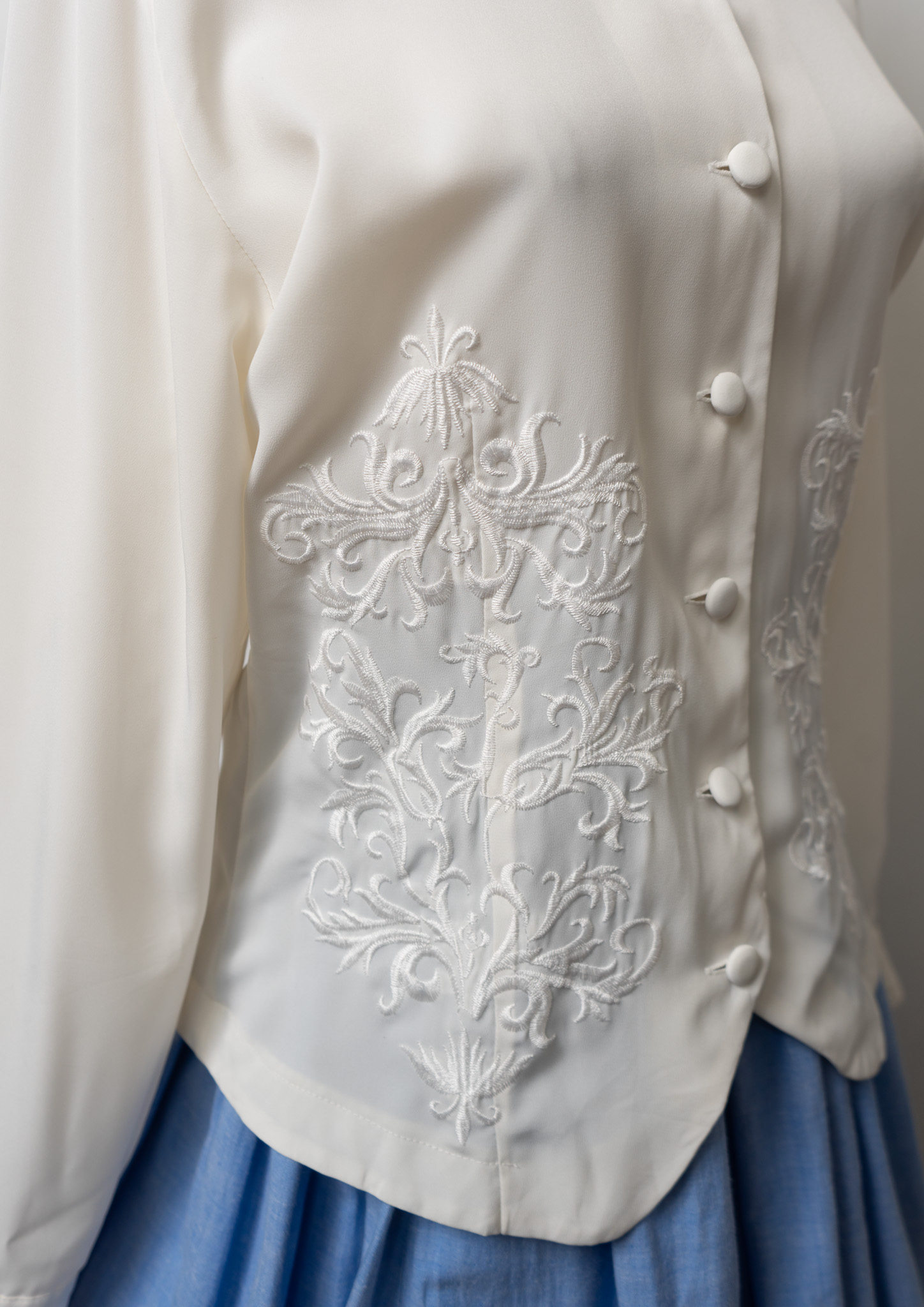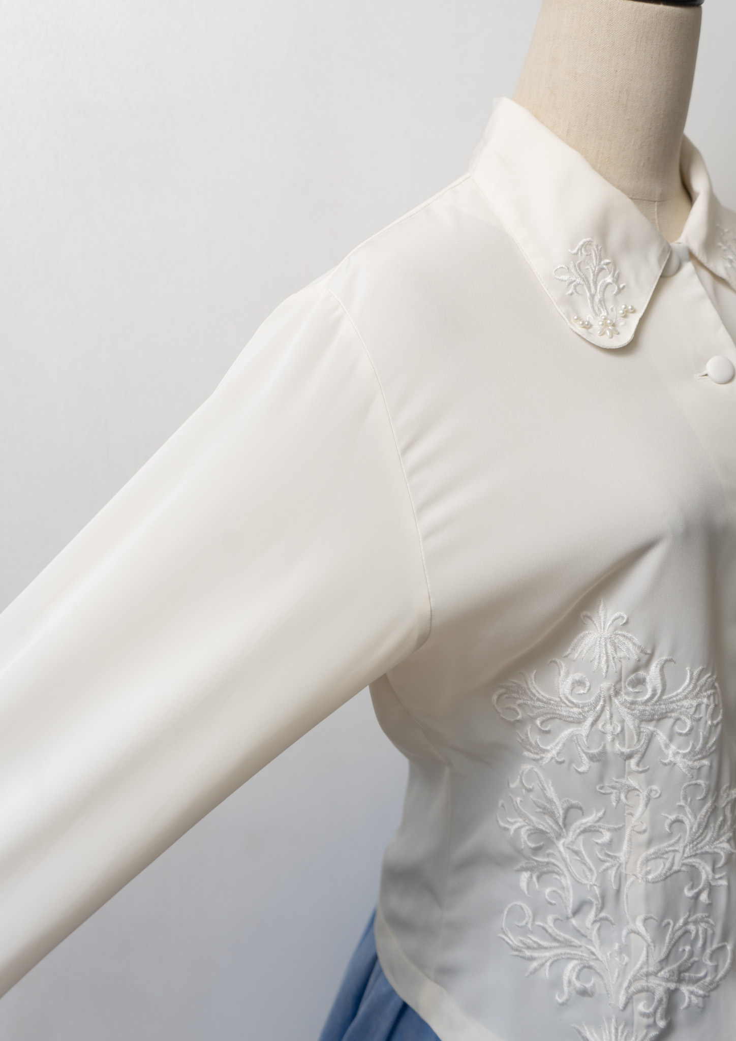 90’s Vine Motif Embroidery Point Beads Design Ivory Blouse