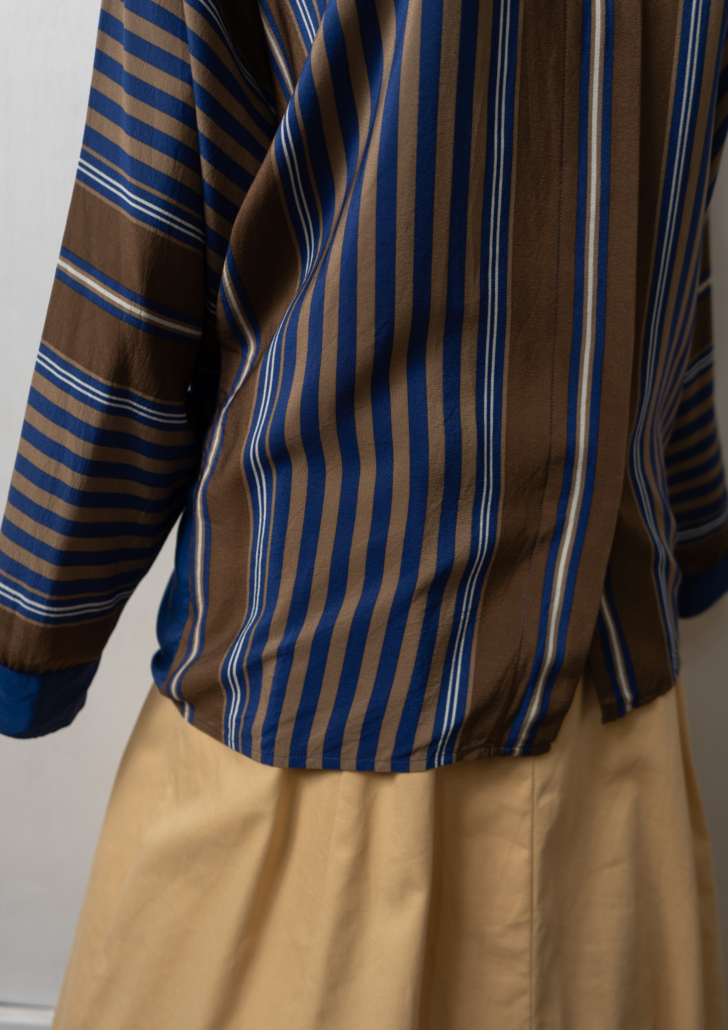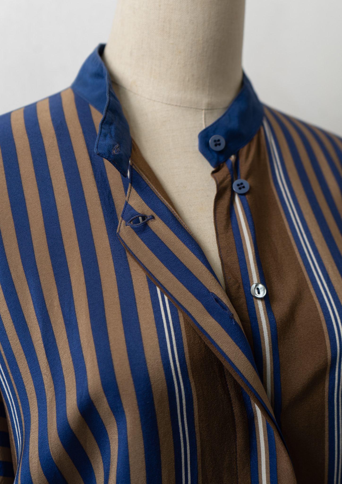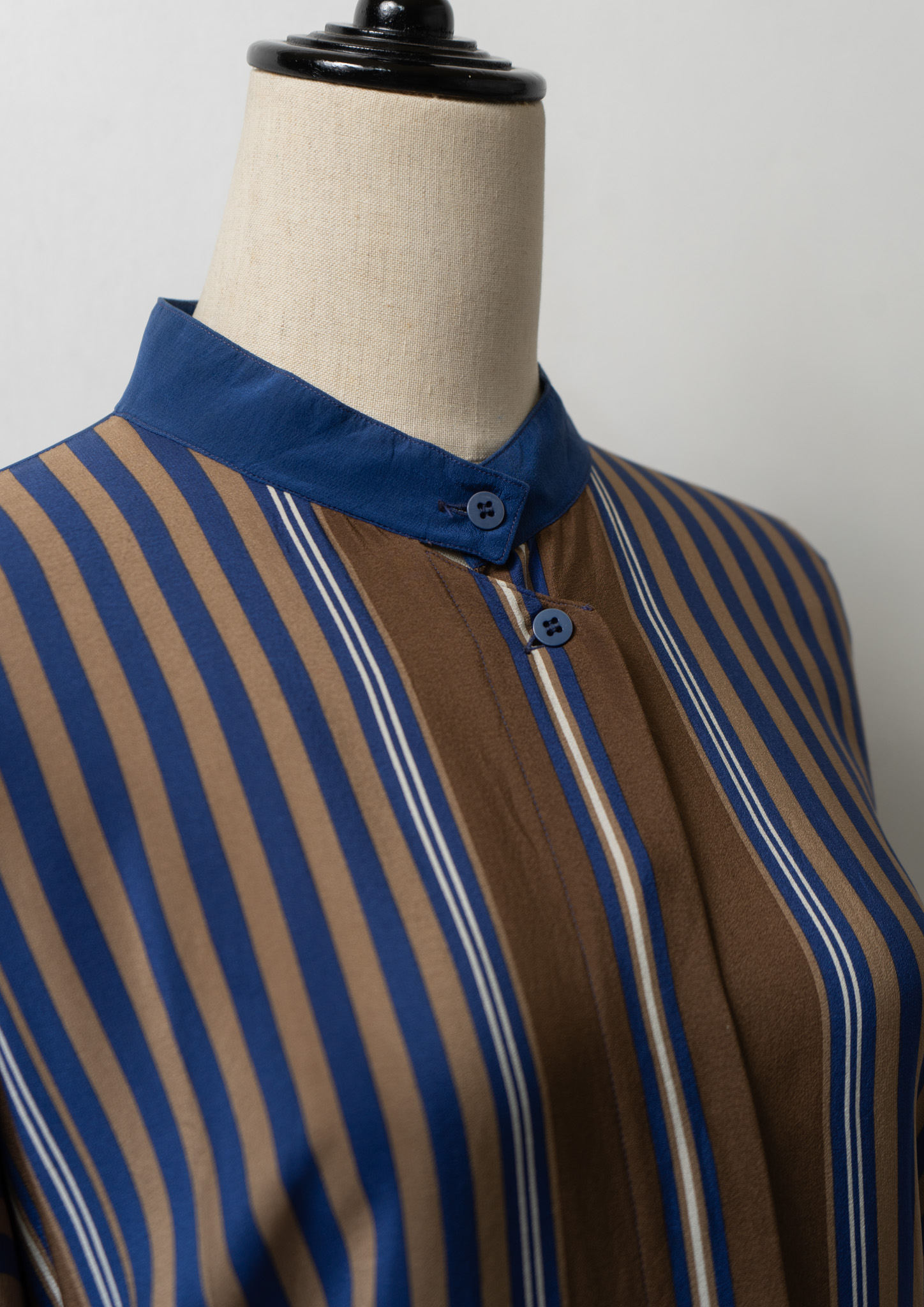 80’s Itary Stripe Pattern Unique Stand Collar Blouse
