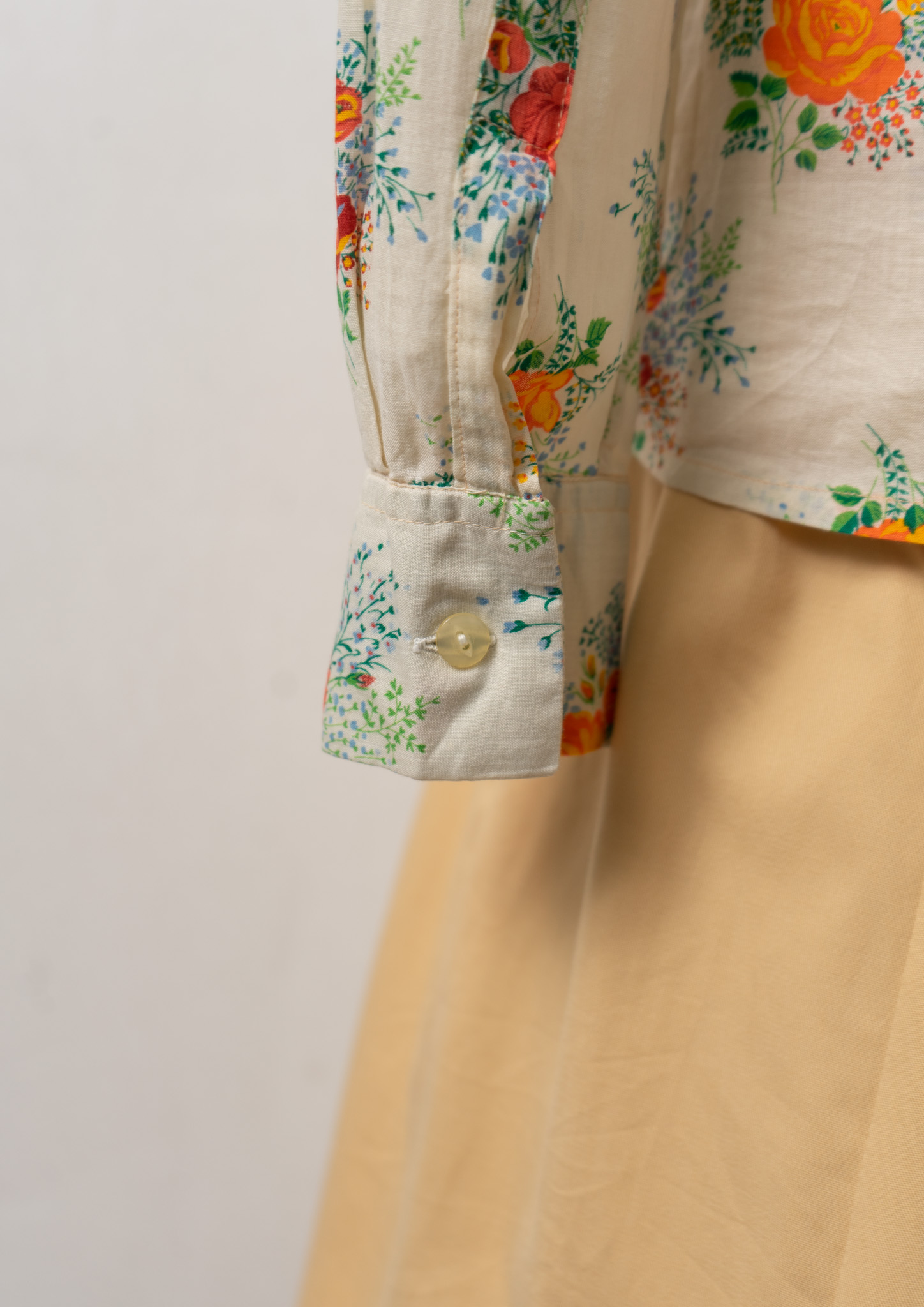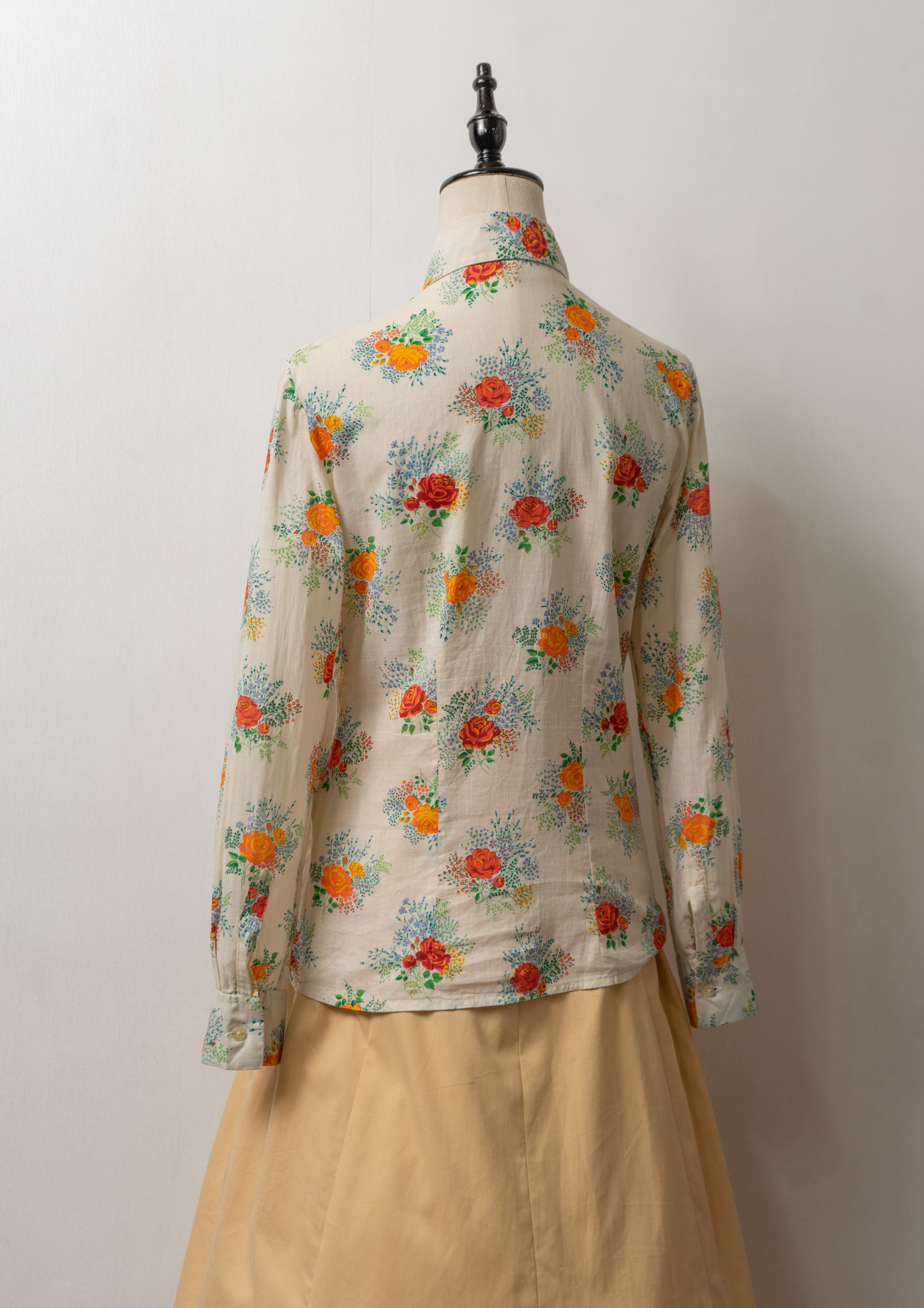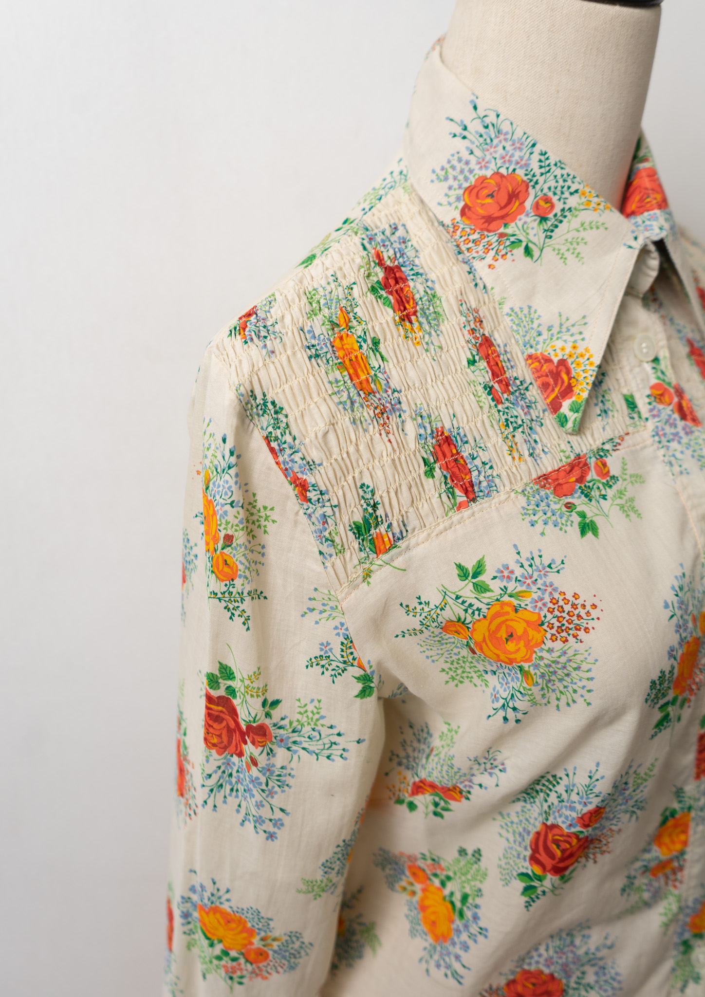 70’s Flower Bouquet Pattern Shirring Design Blouse