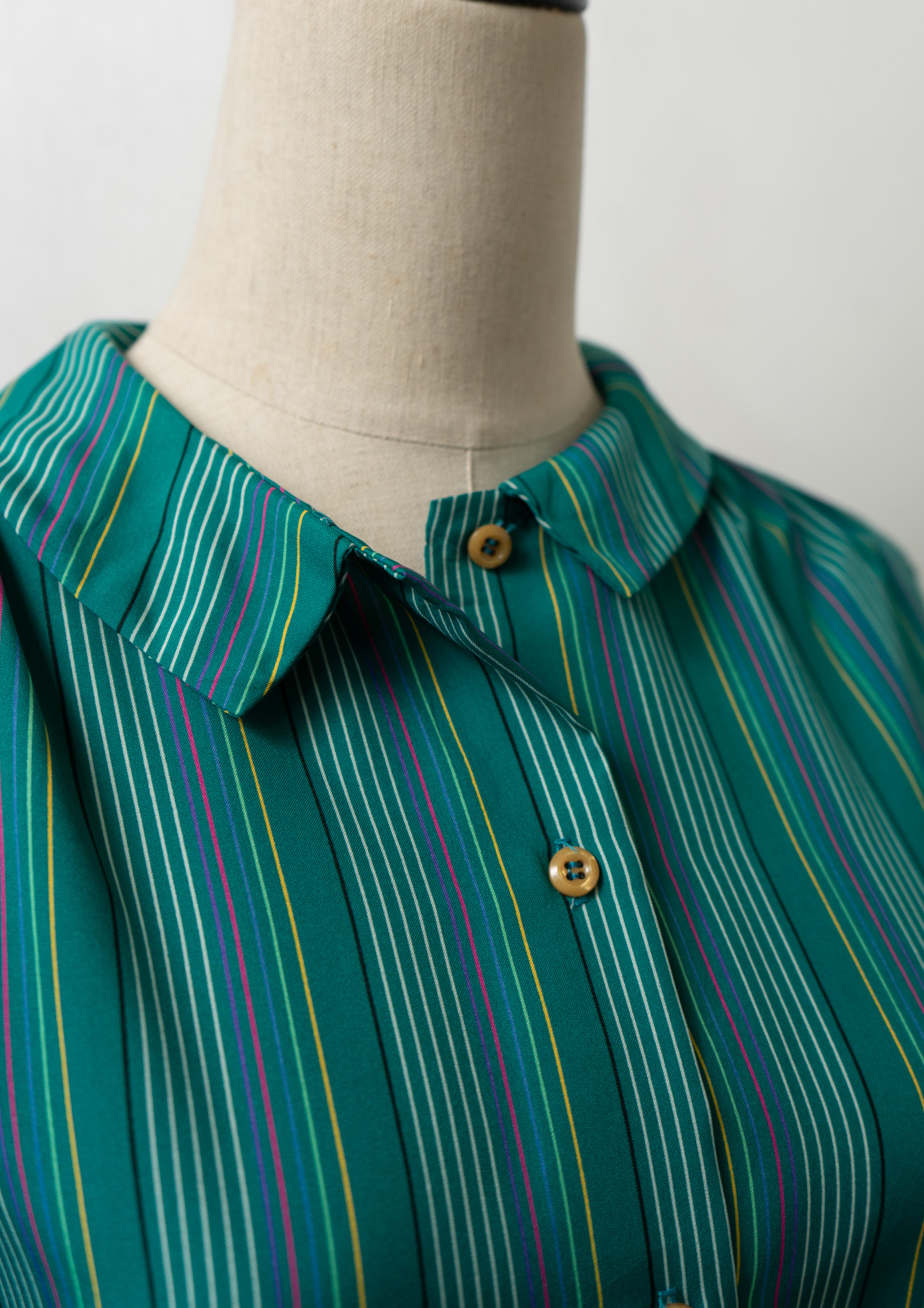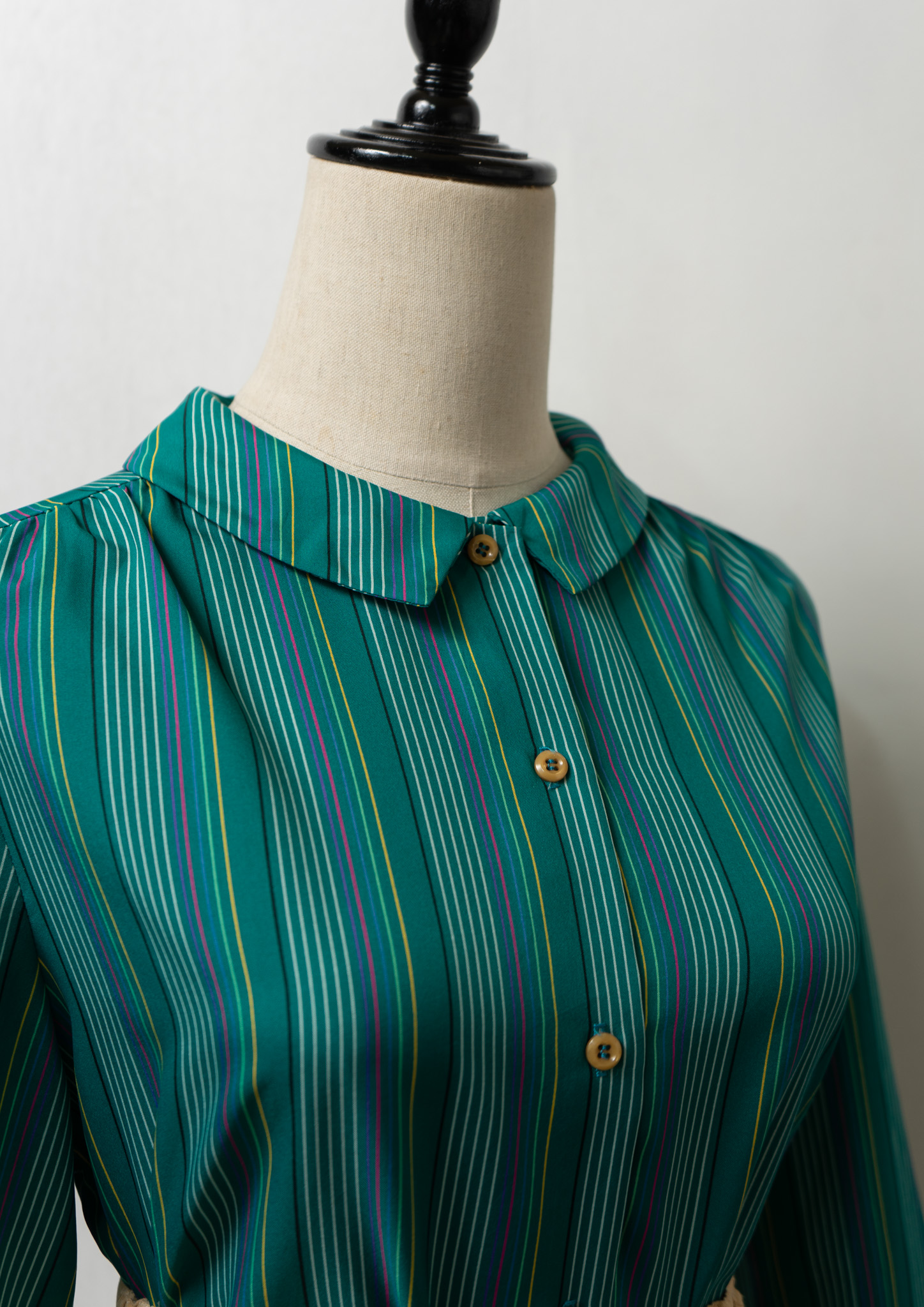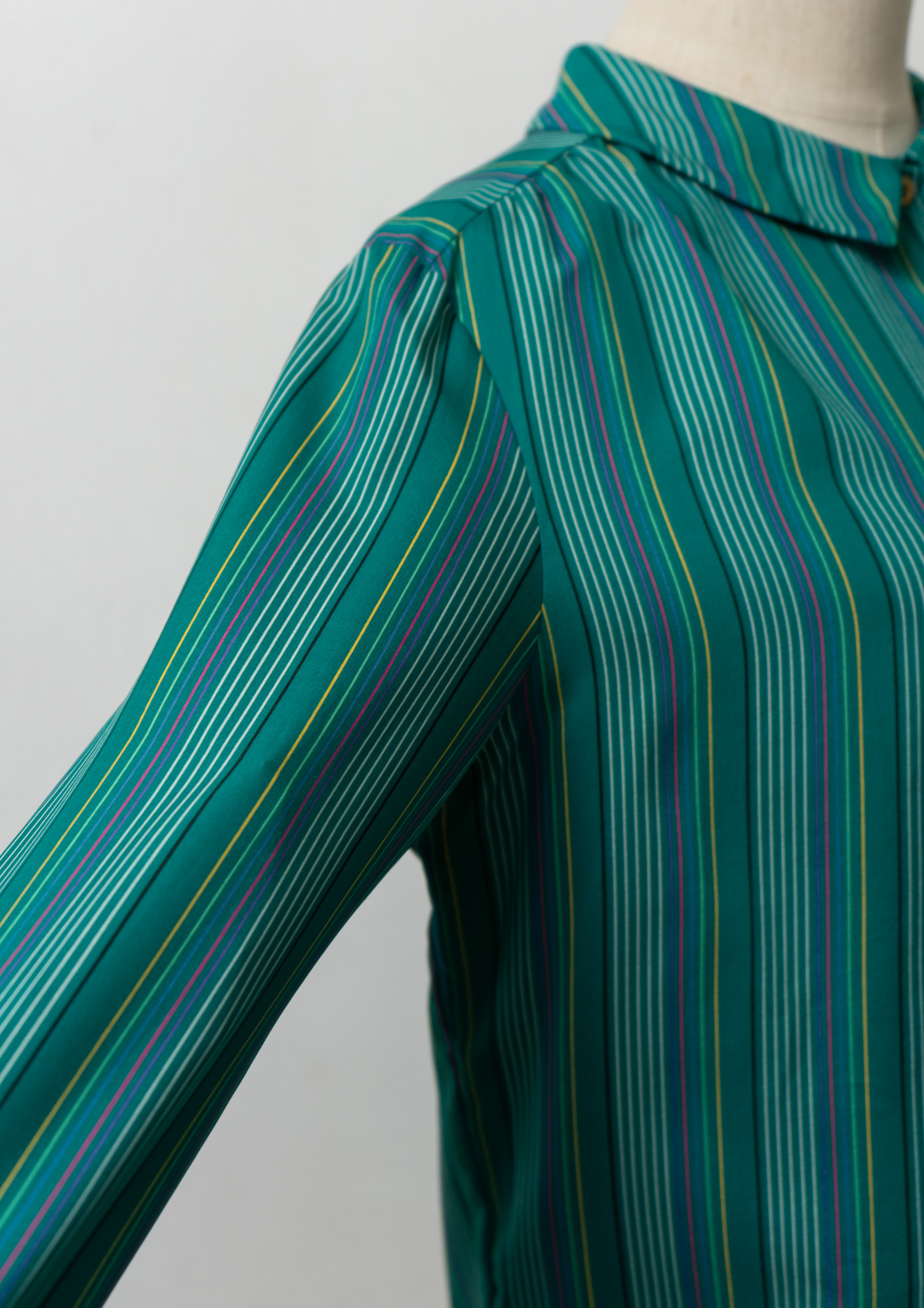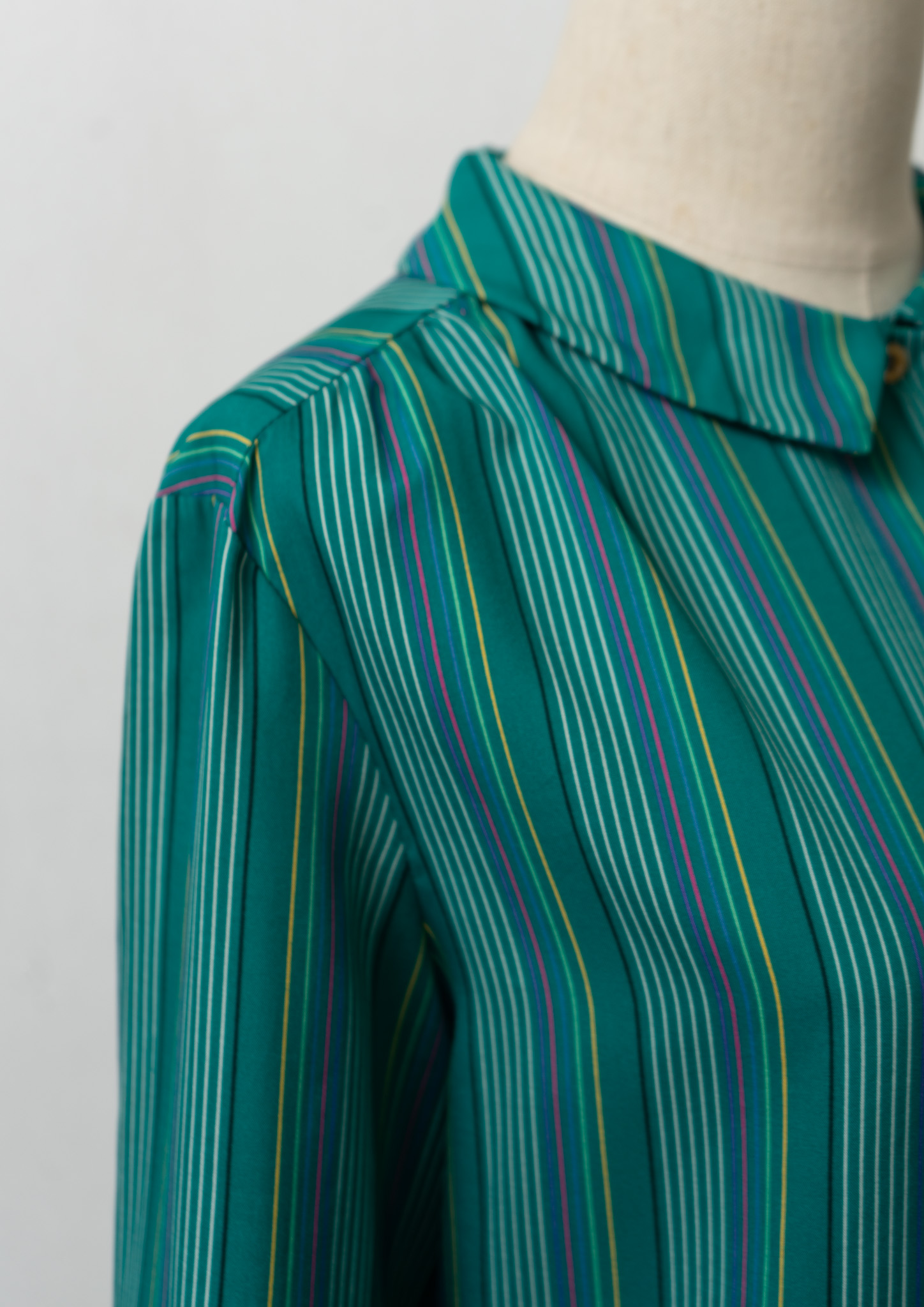 80’s Multi Color Stripe Pattern Green Blouse