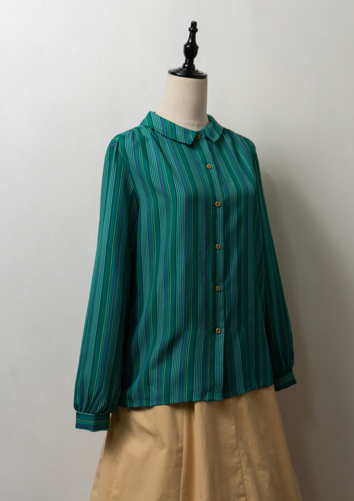 80’s Itary Stripe Pattern Unique Stand Collar Blouse