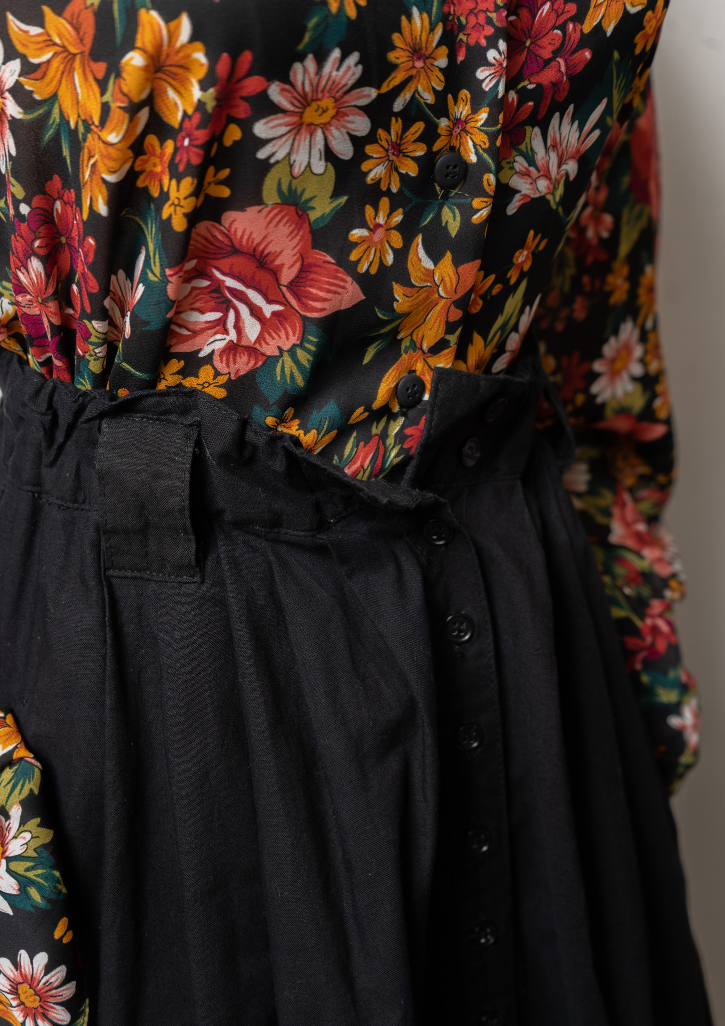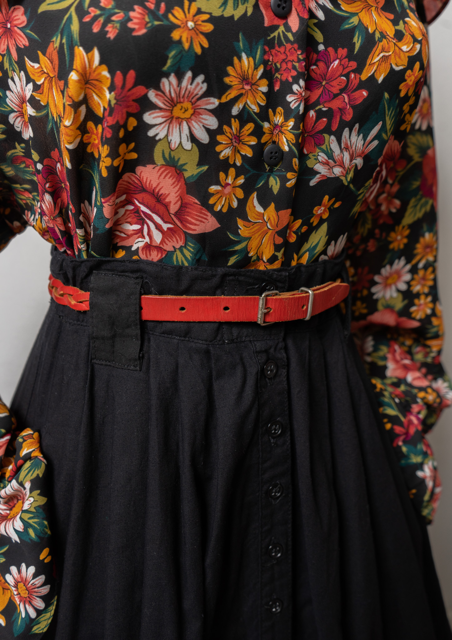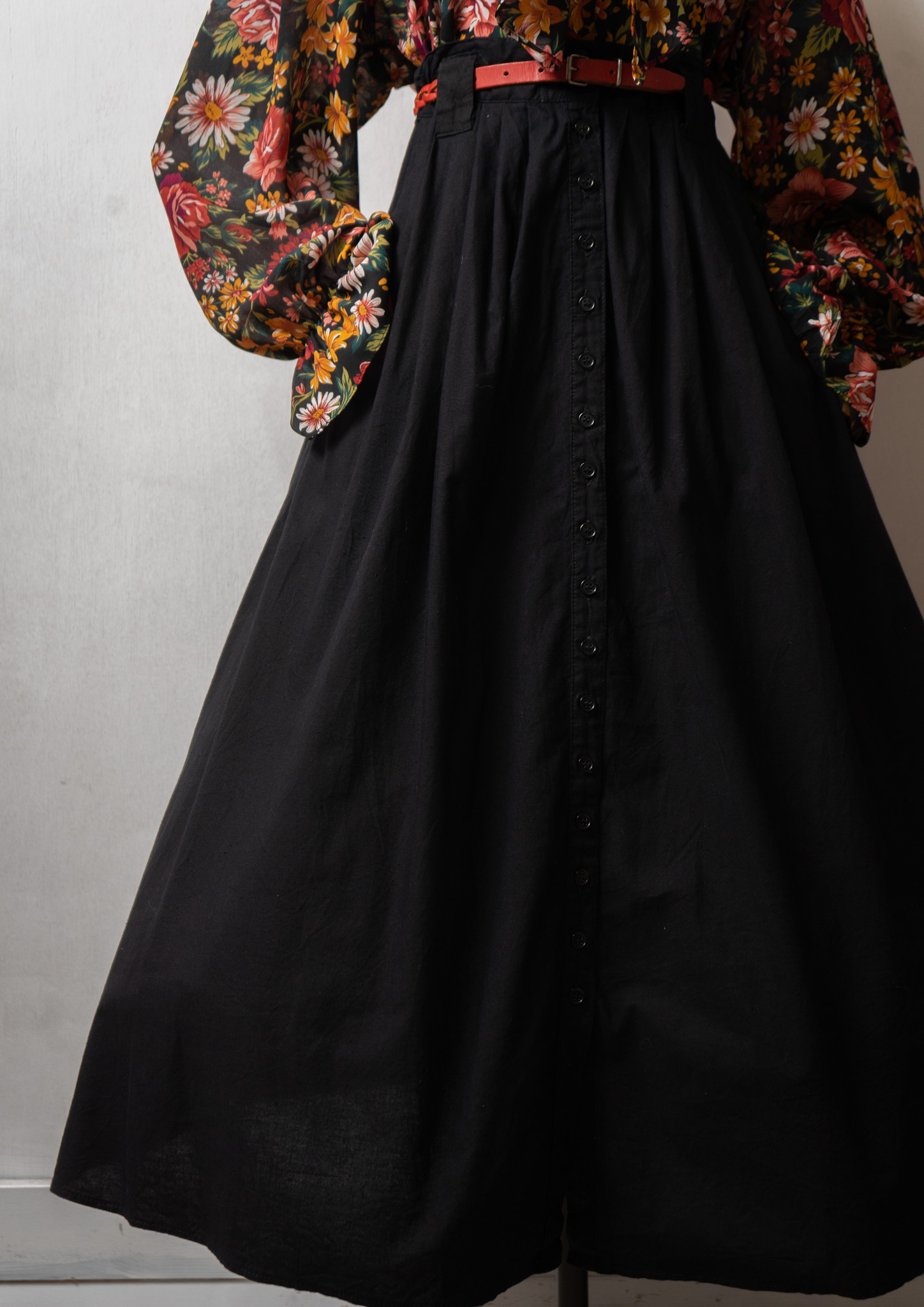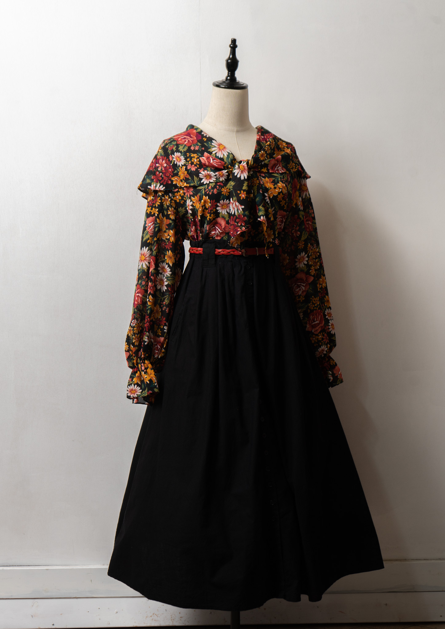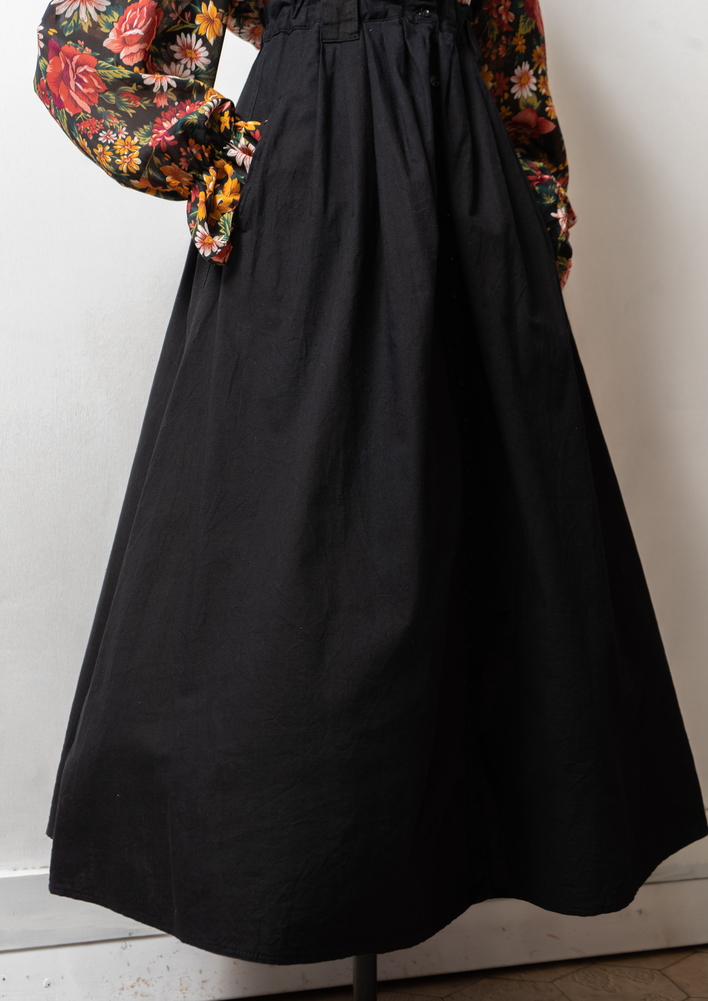 90's Small Flower Pattern Black Skirt