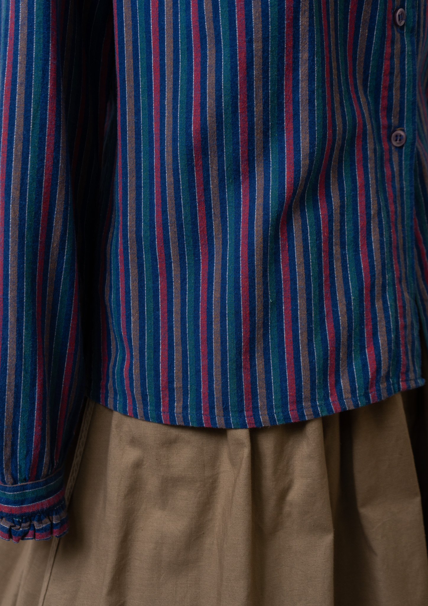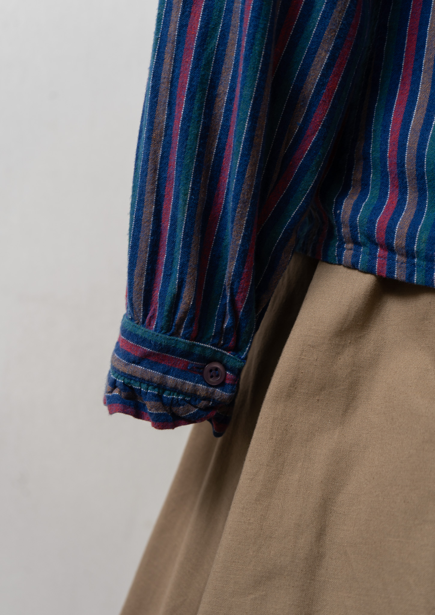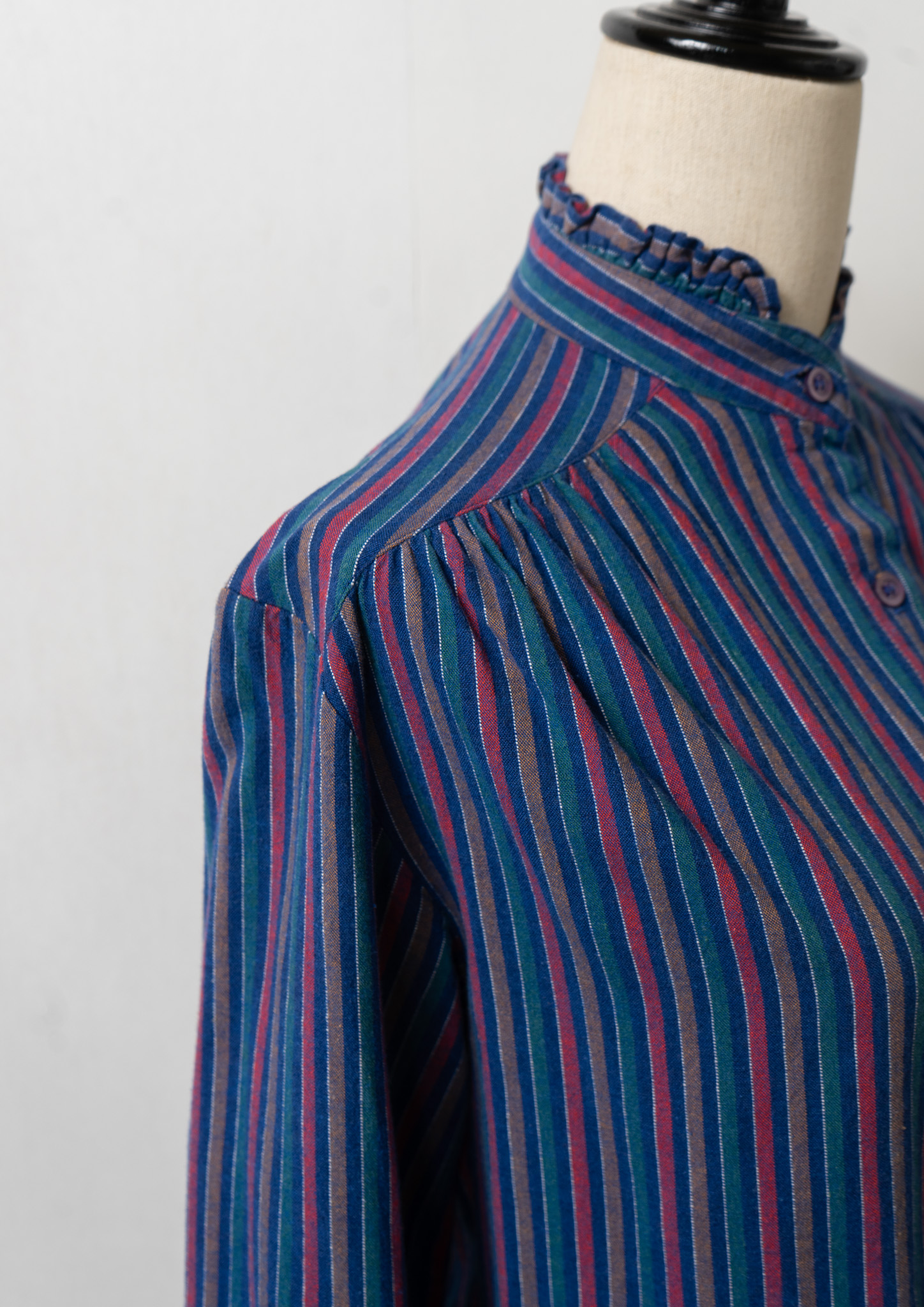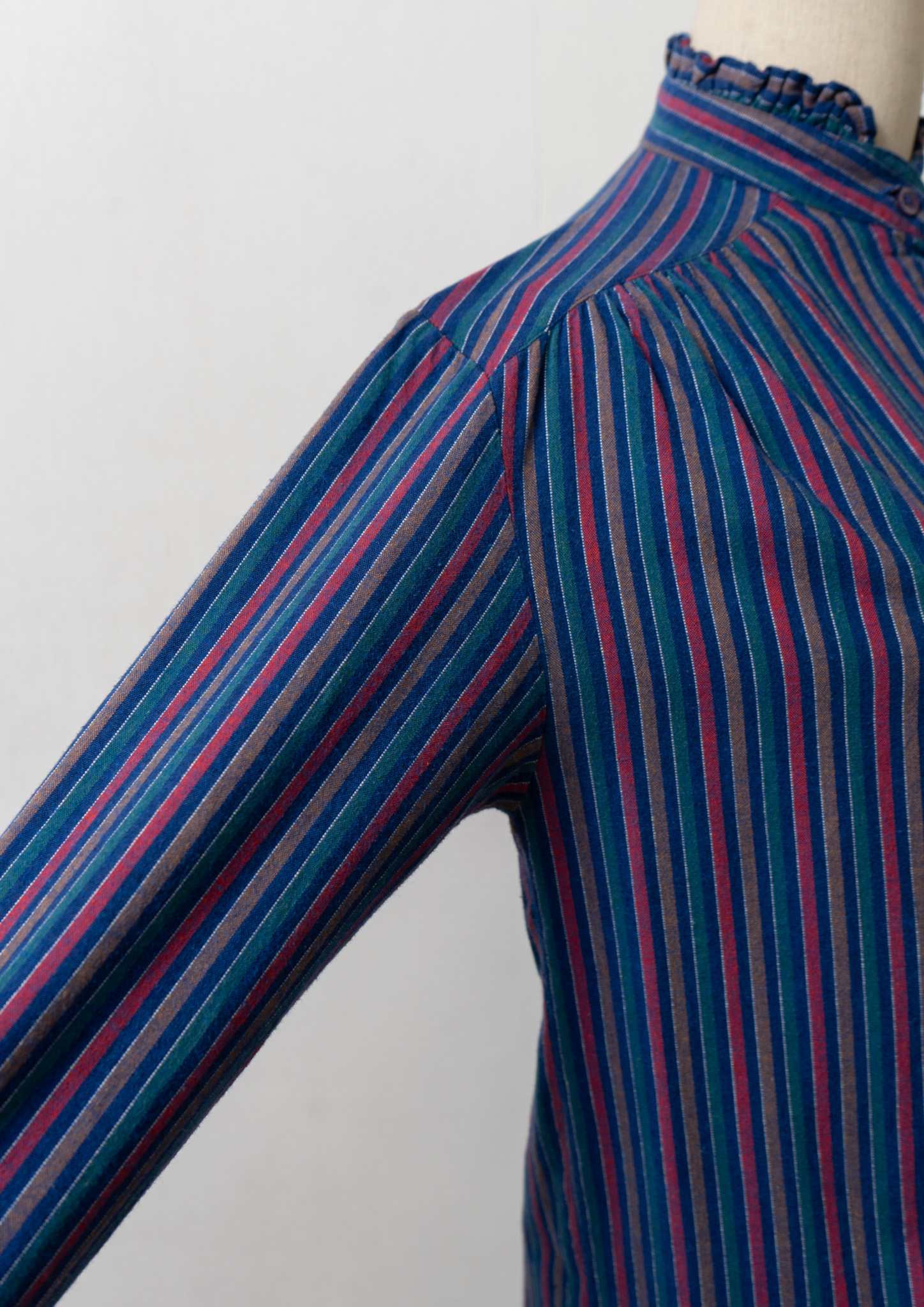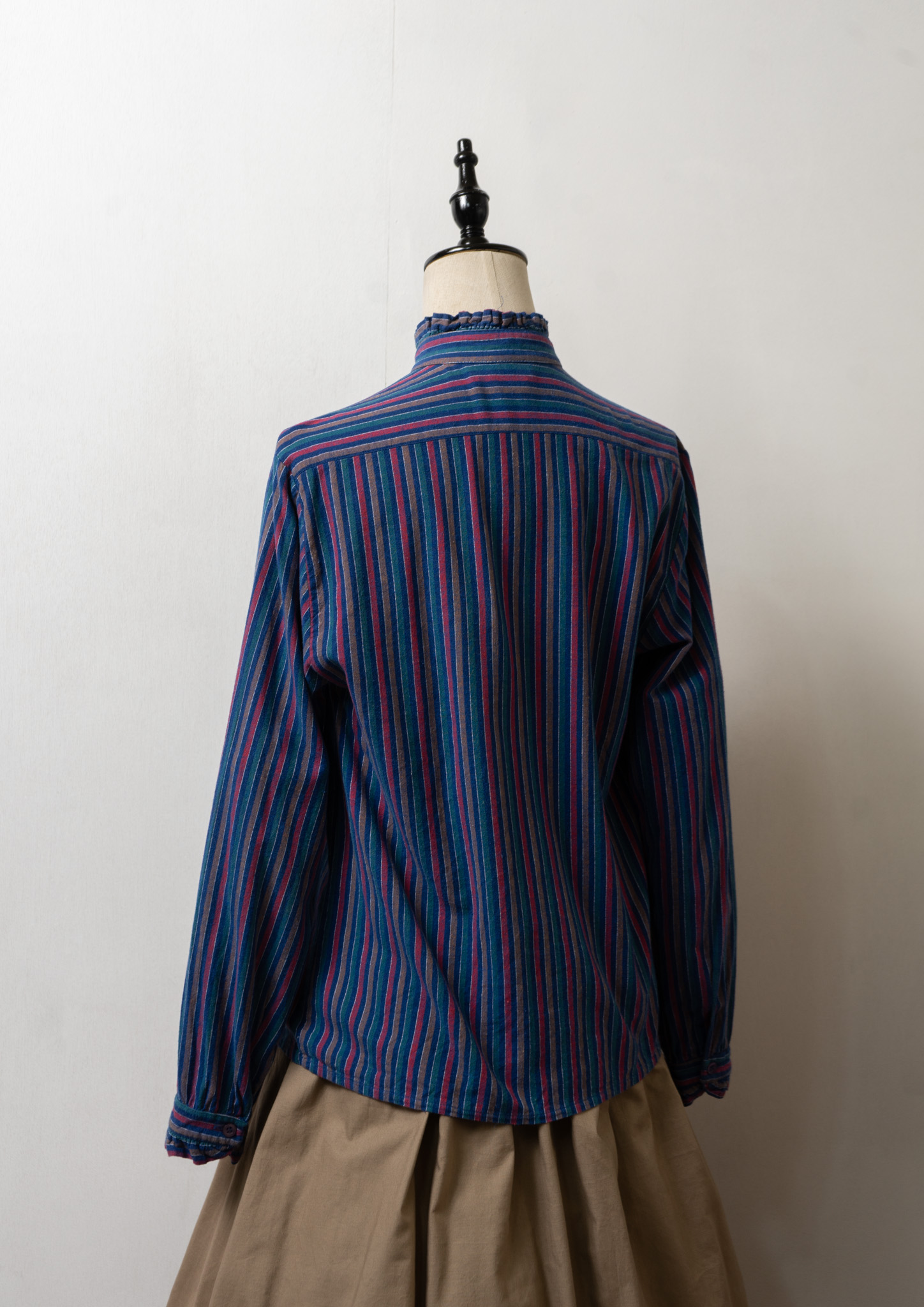 80’s Multi Color Stripe Pattern Stand Collar Blouse