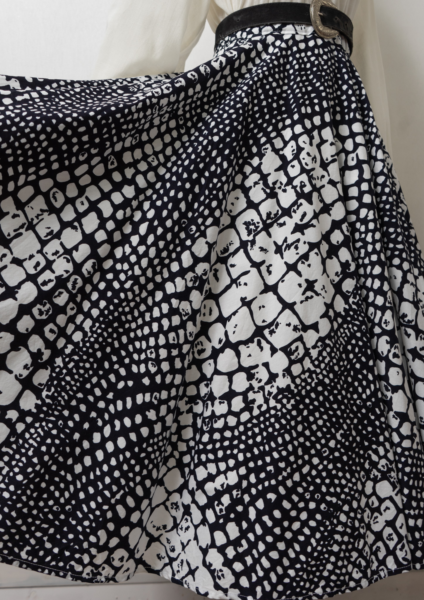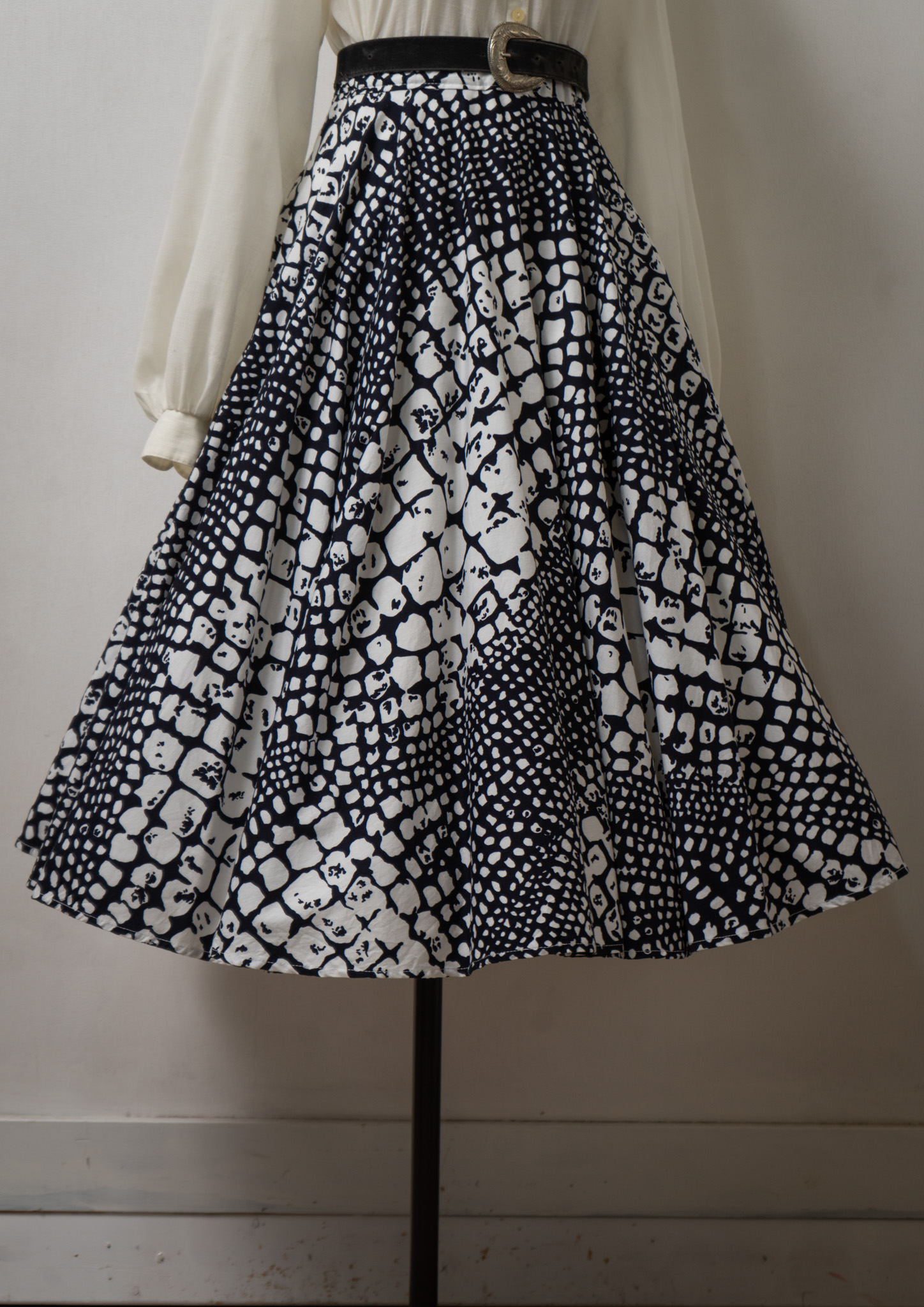 90’s Euro Black × White Art Pattern Circular Skirt