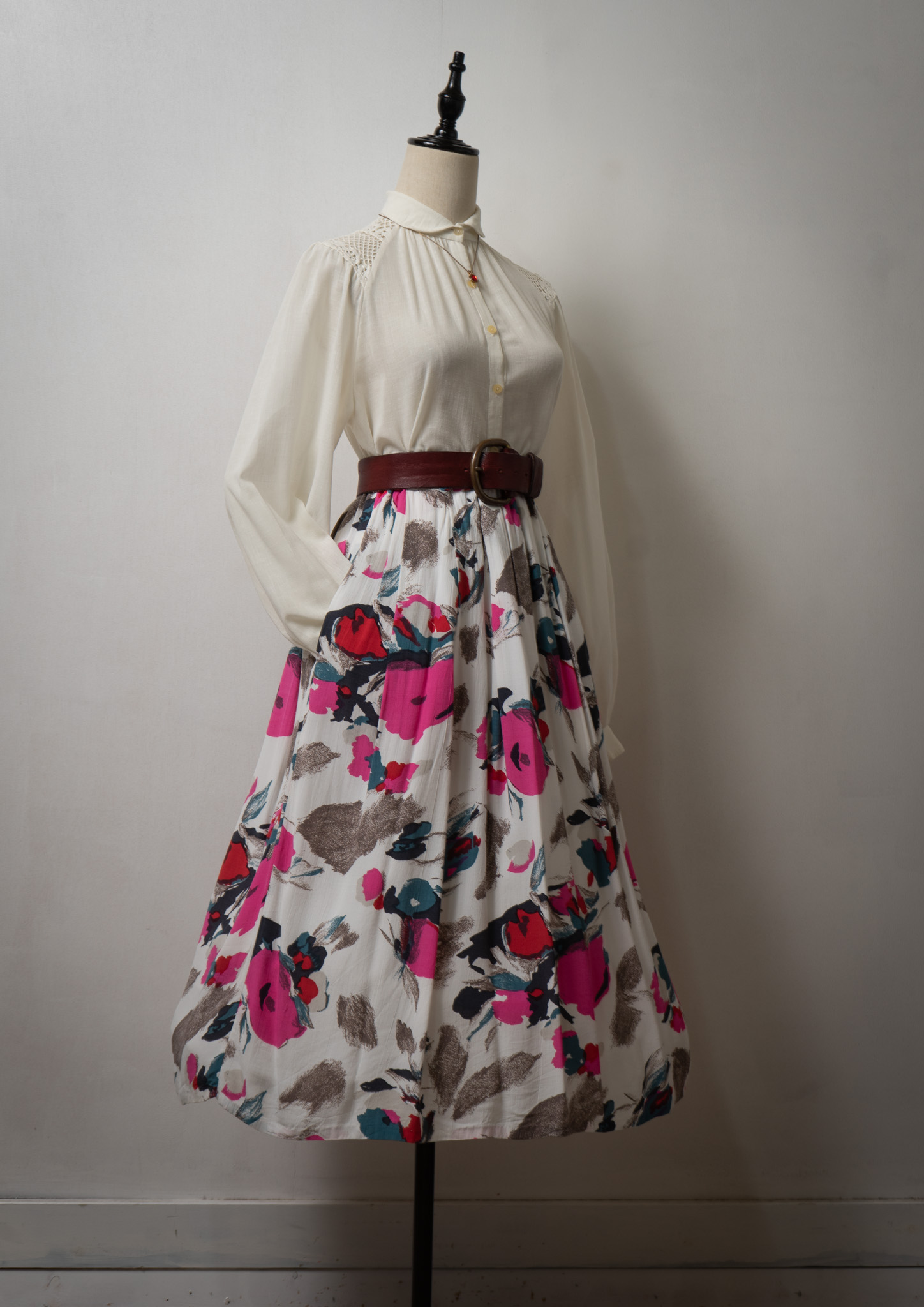 90's Small Flower Pattern Black Skirt