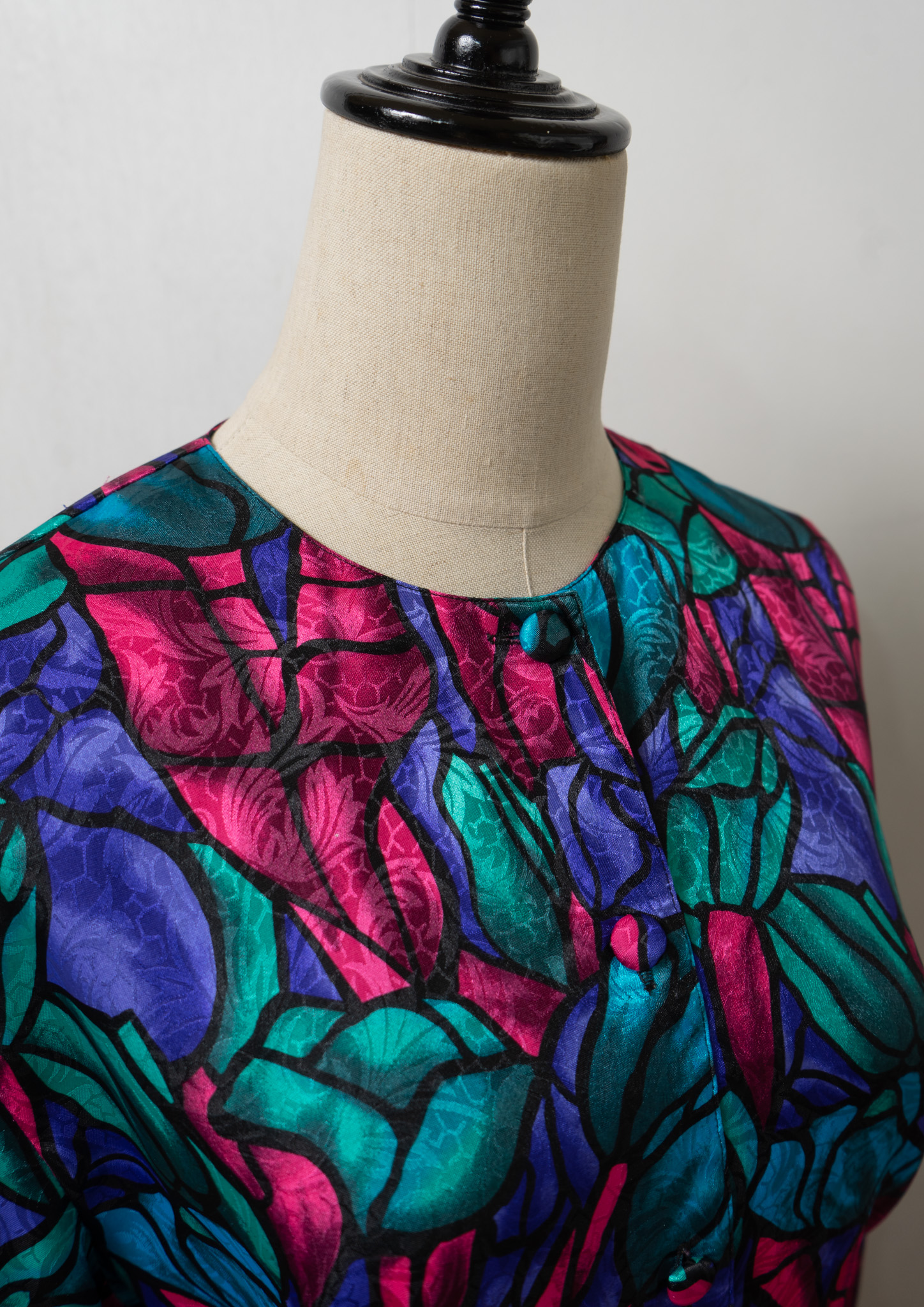 80's Geometric Medallion Pattern Frill Neck Blouse