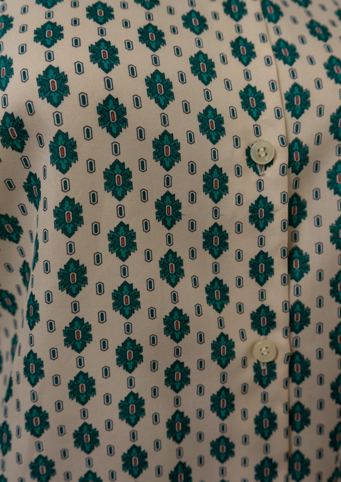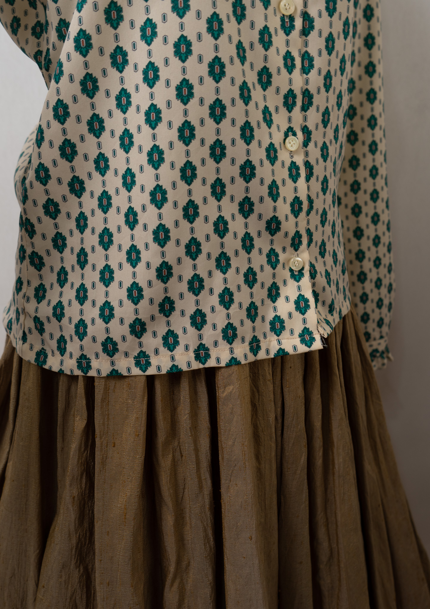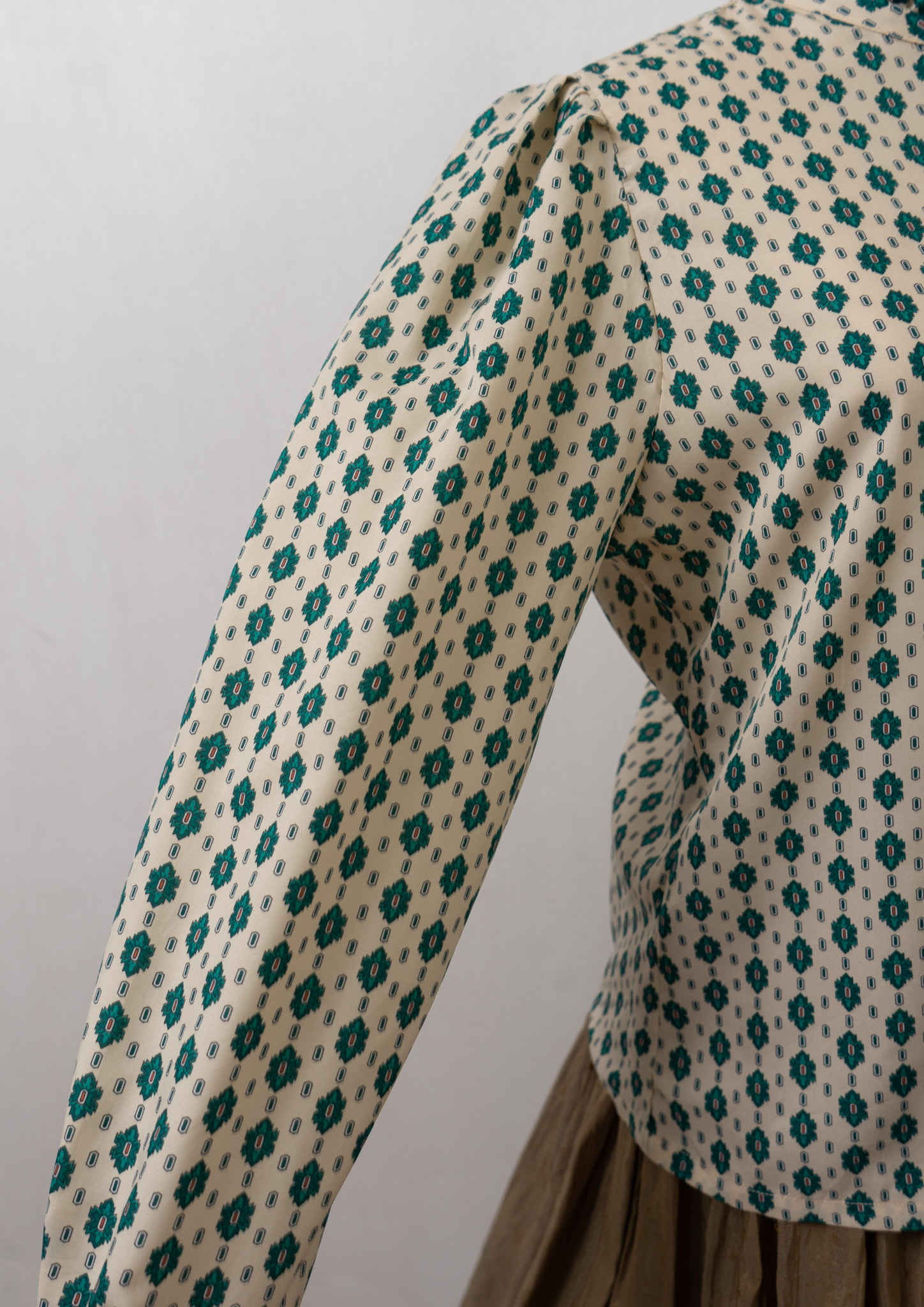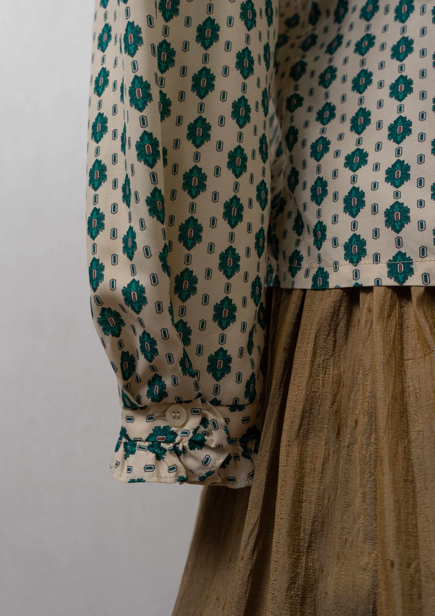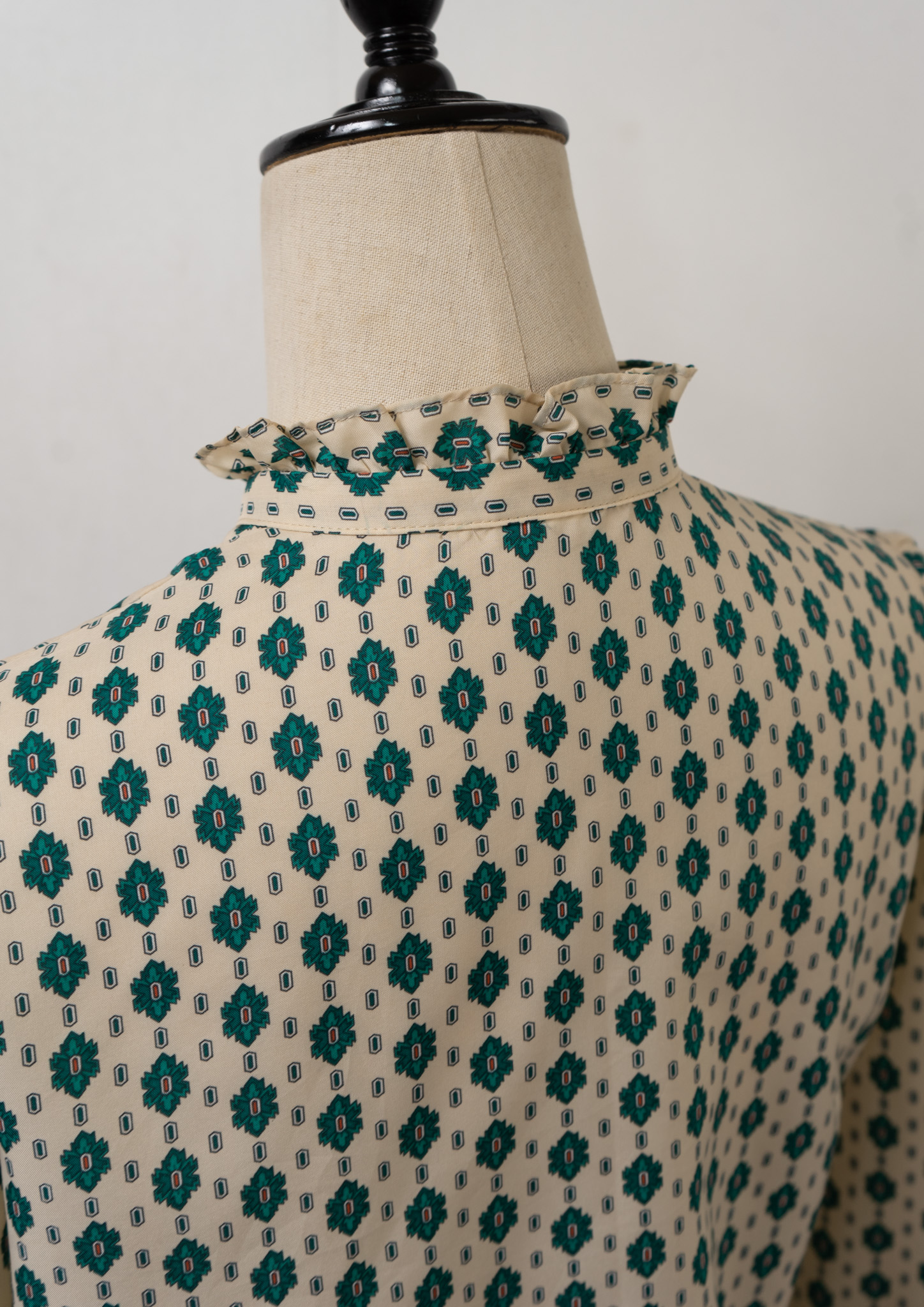 80's Geometric Medallion Pattern Frill Neck Blouse