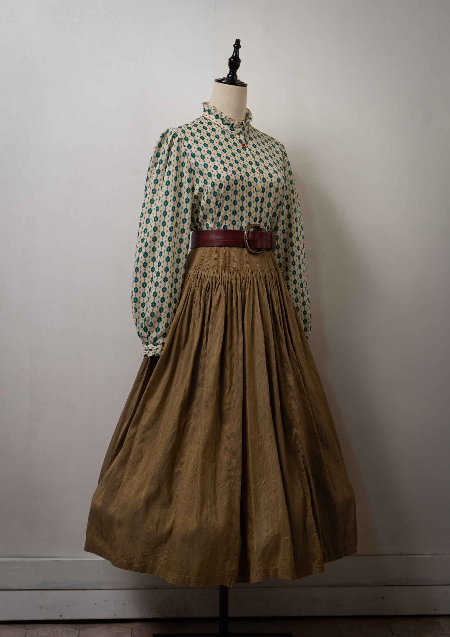 70's Flower Motif Pattern Gold Lame Thread Blouse