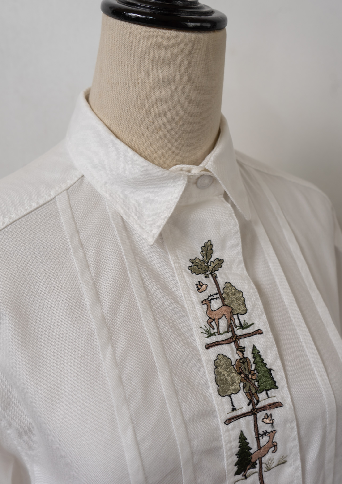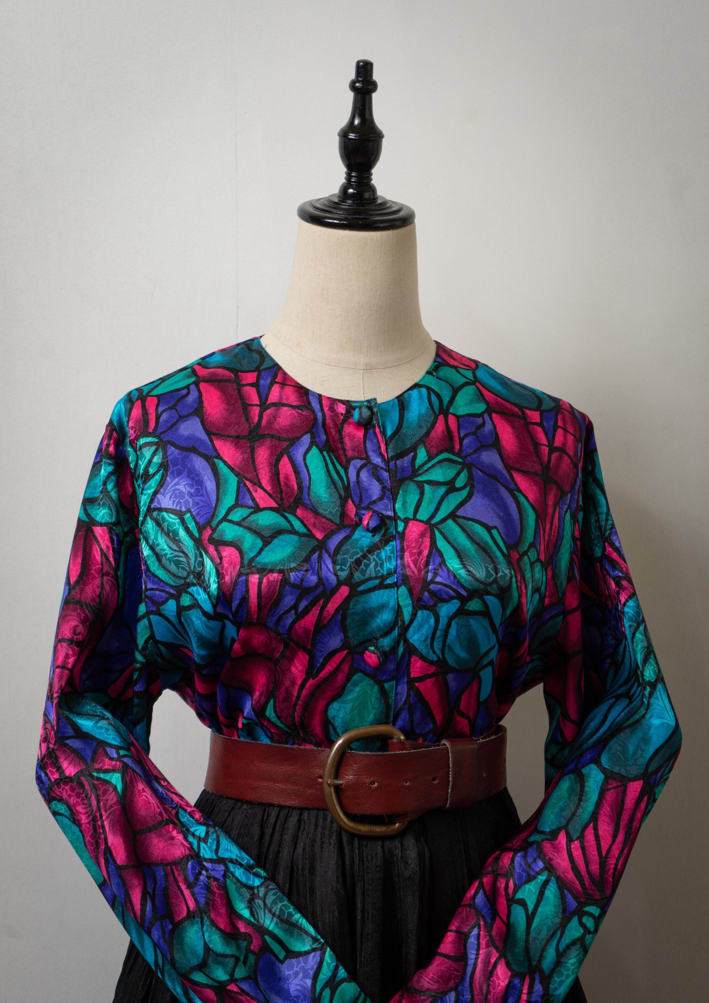 80's Geometric Medallion Pattern Frill Neck Blouse