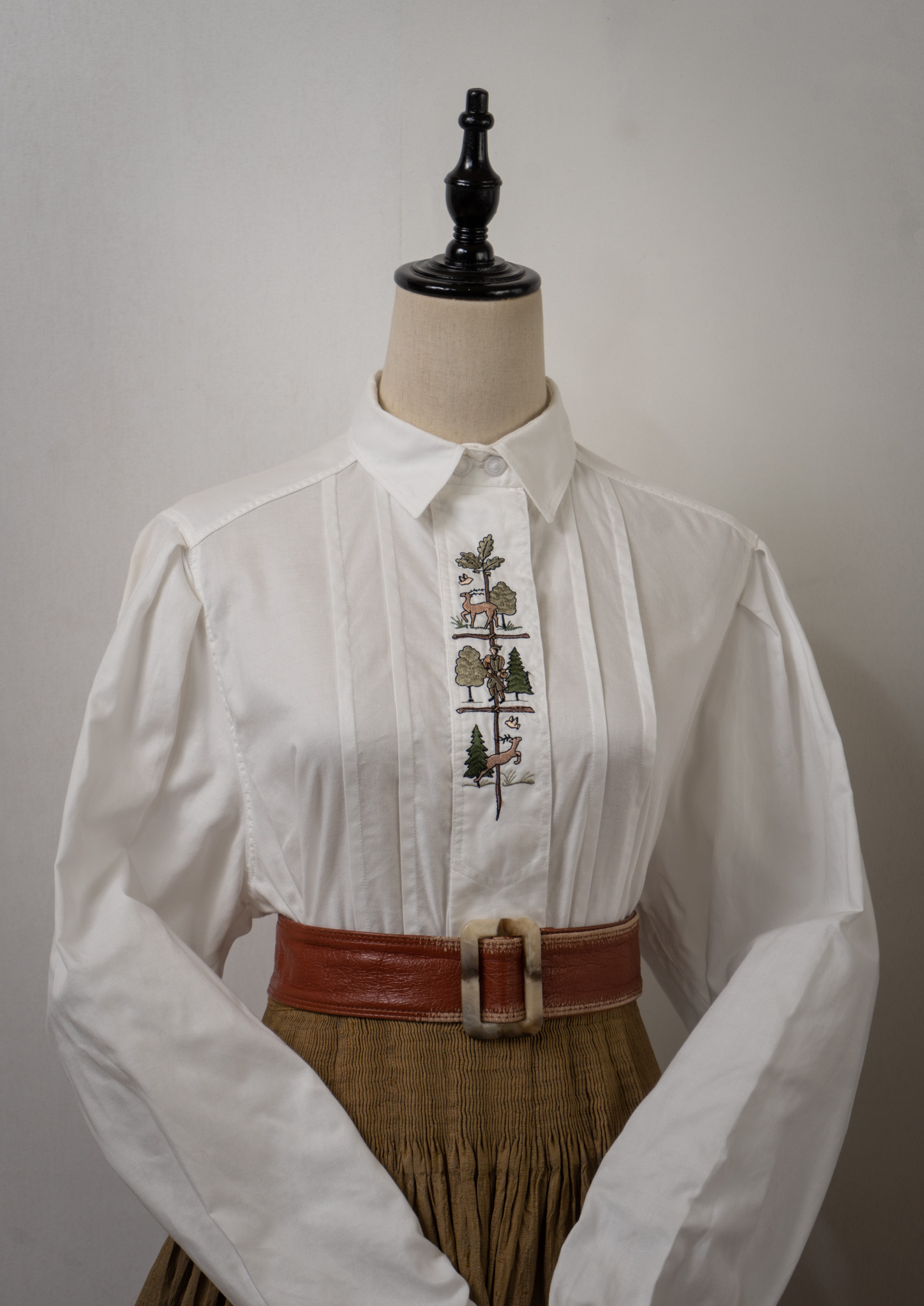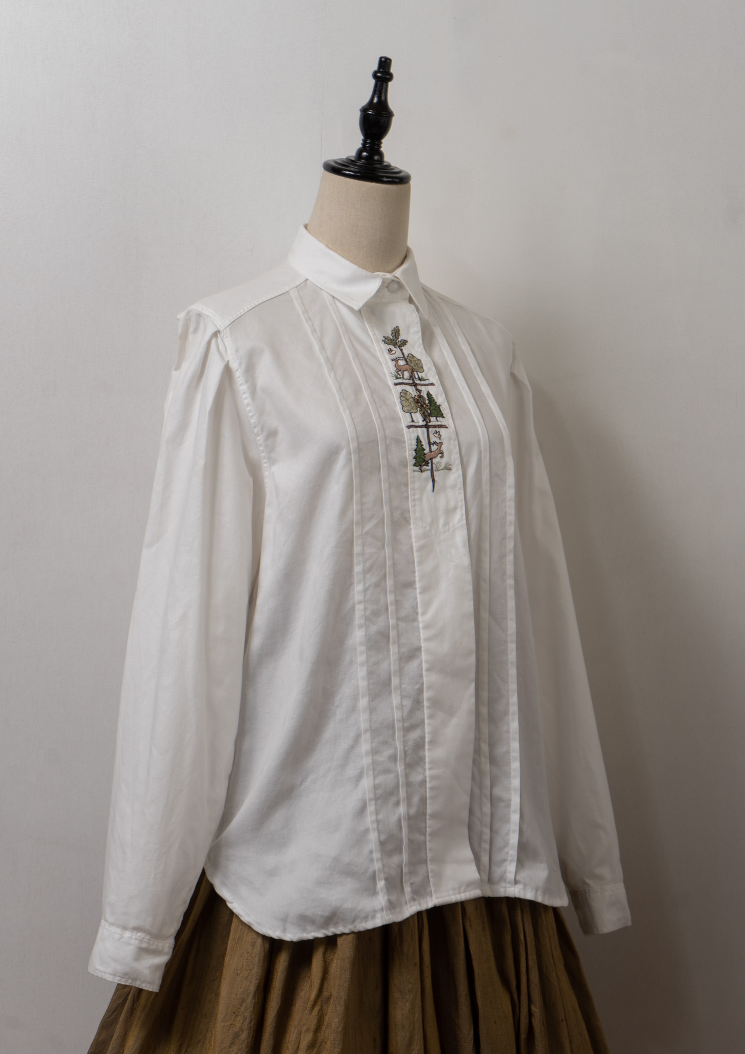 80~90's Bow-tie × Jabot Like Collar Ivory Blouse