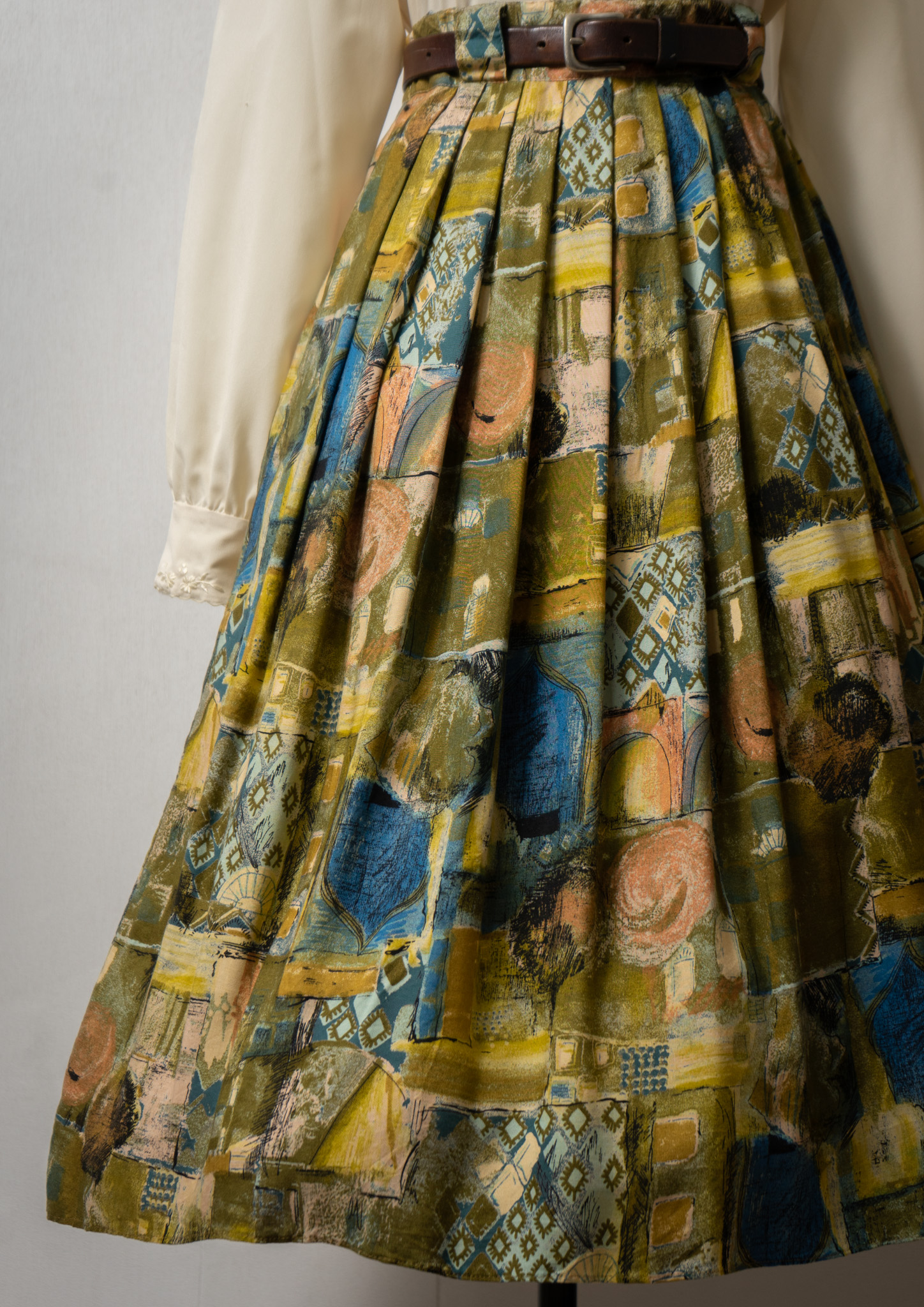 90’s Euro Scarf Like Pattern Tuck Design Skirt