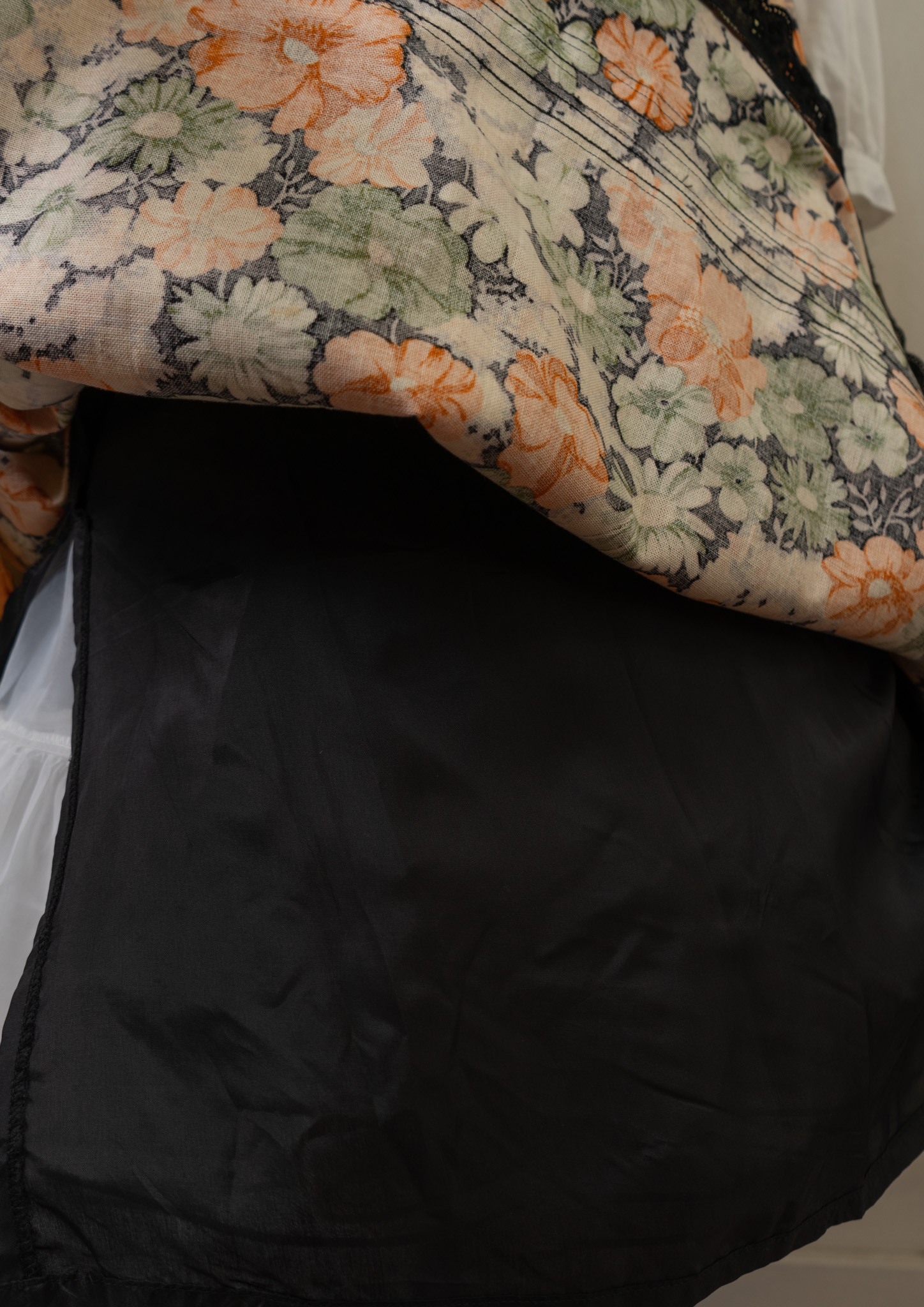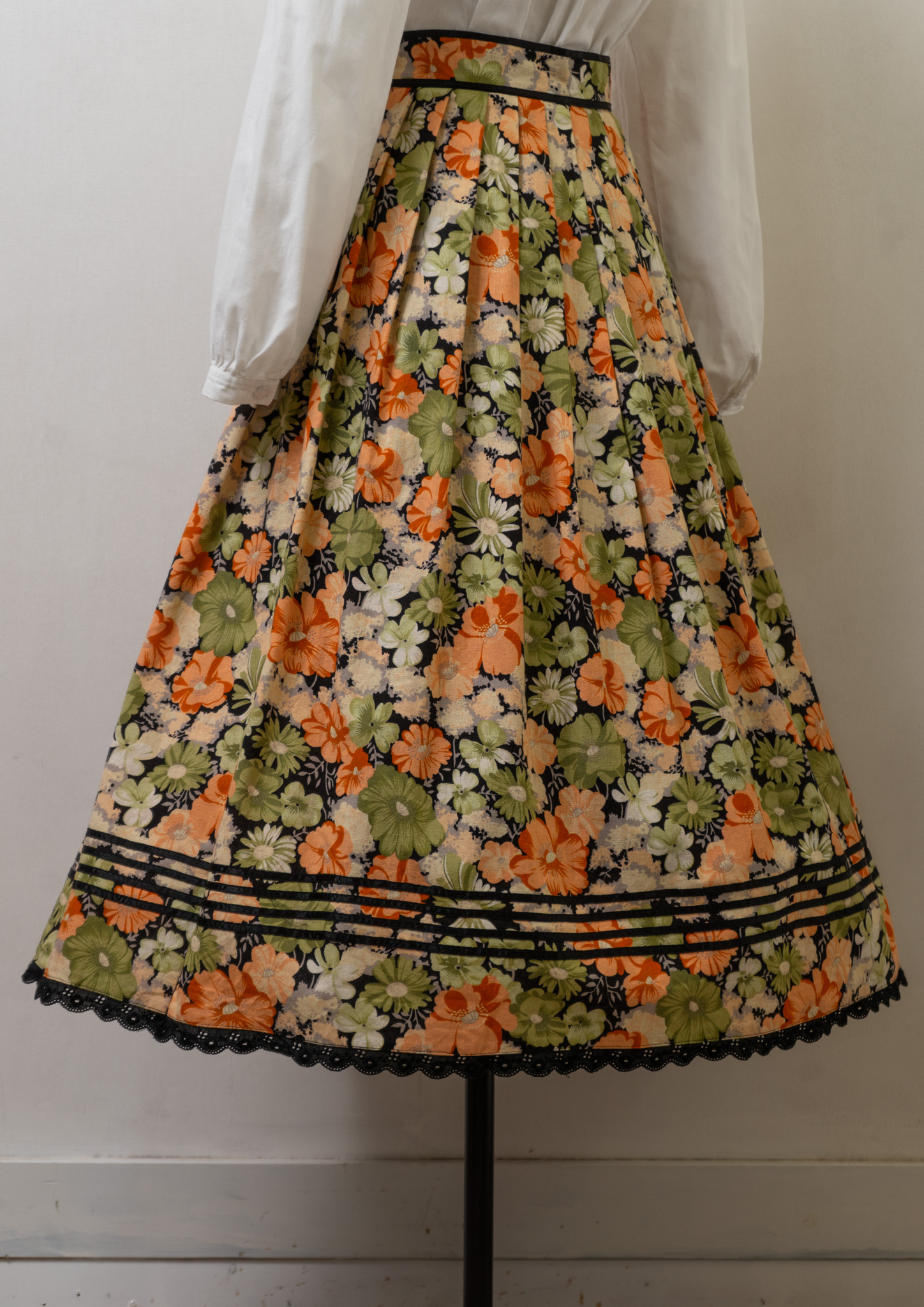 90's Small Flower Pattern Black Skirt