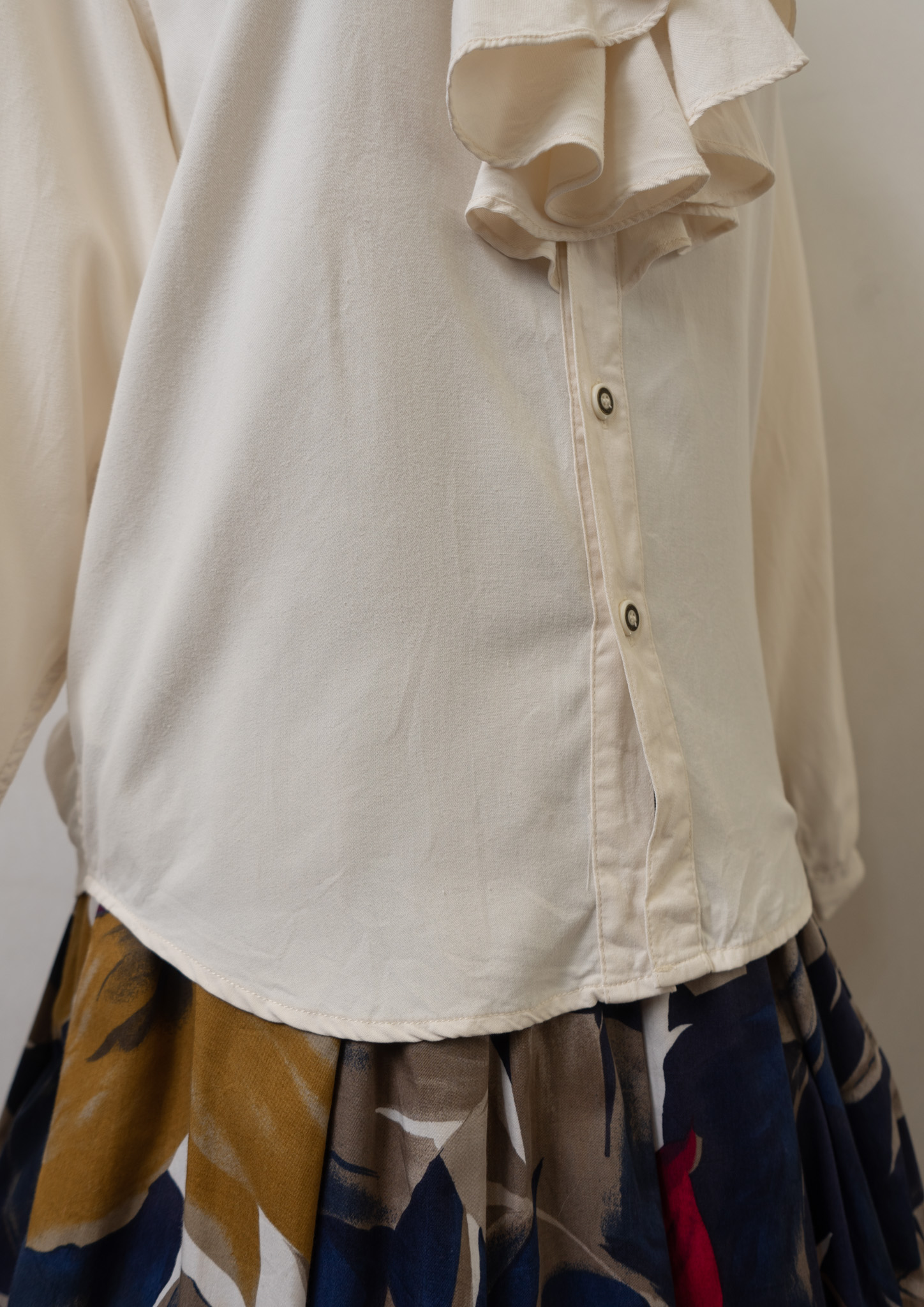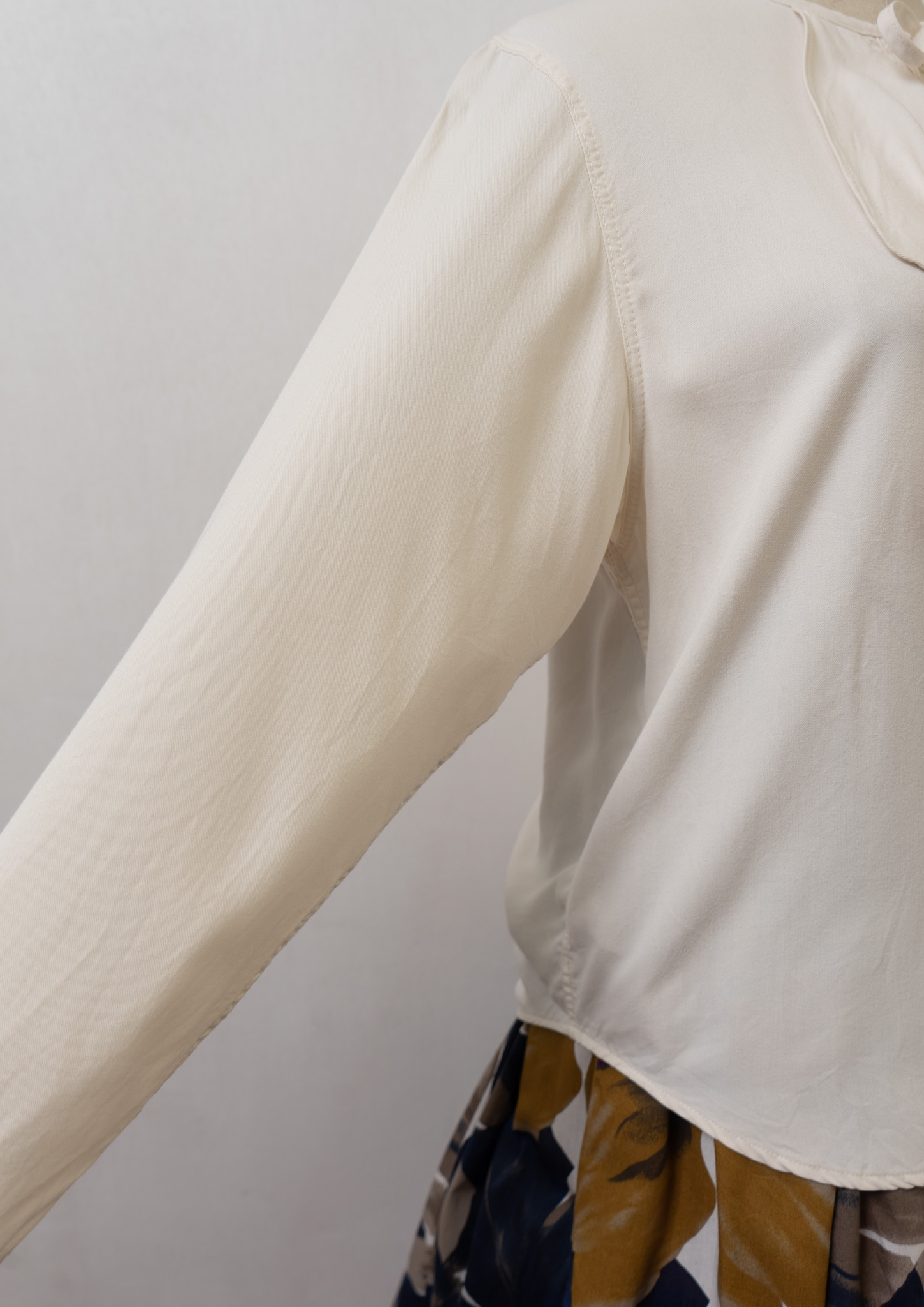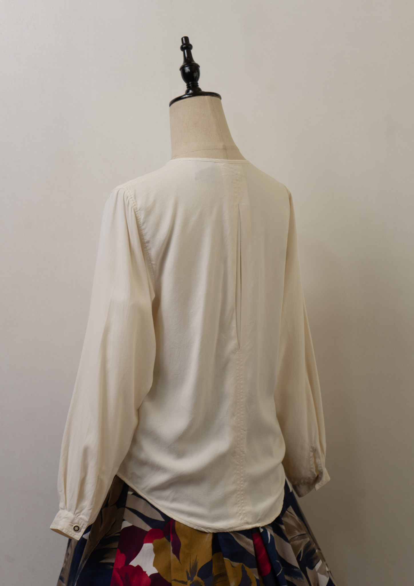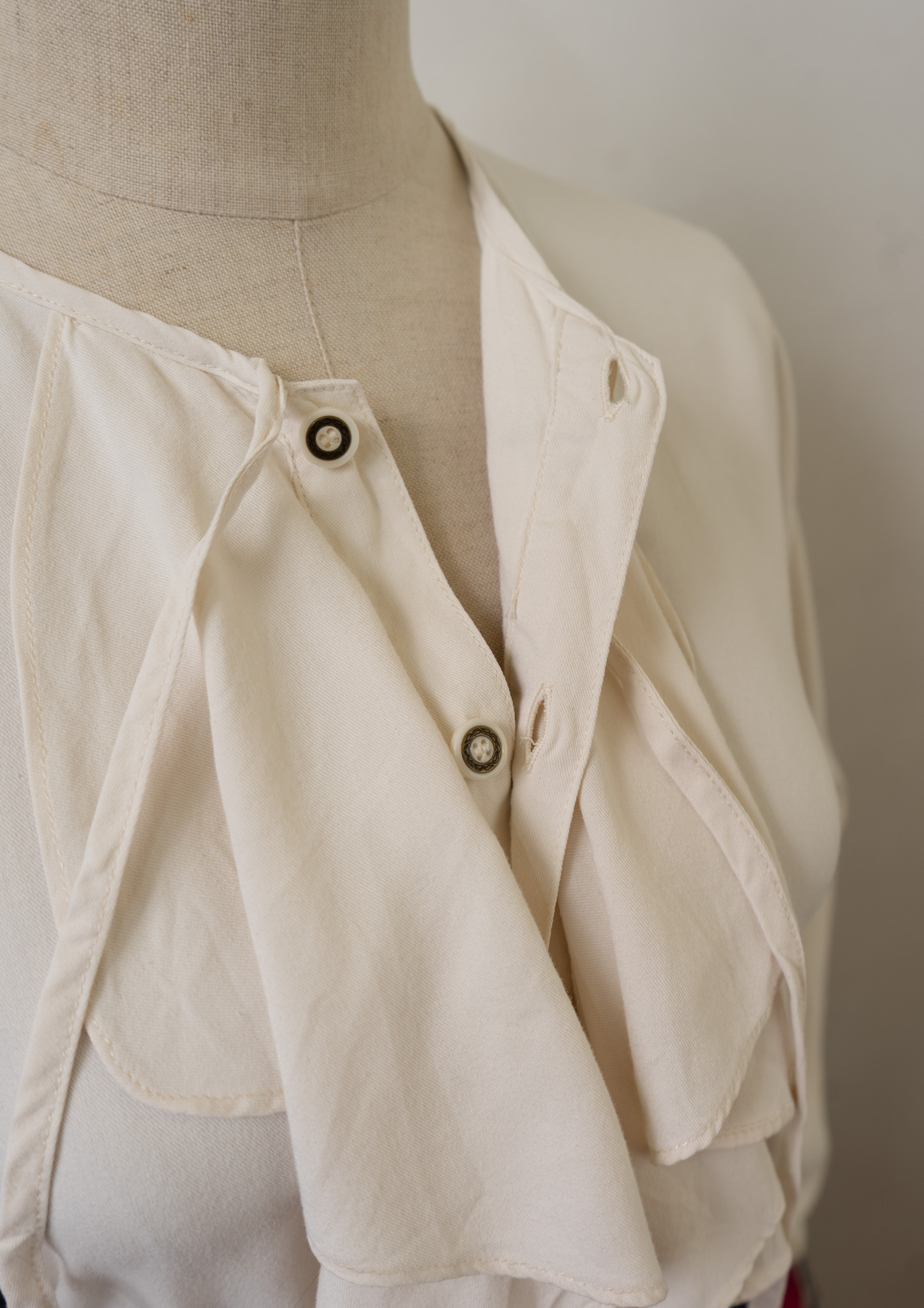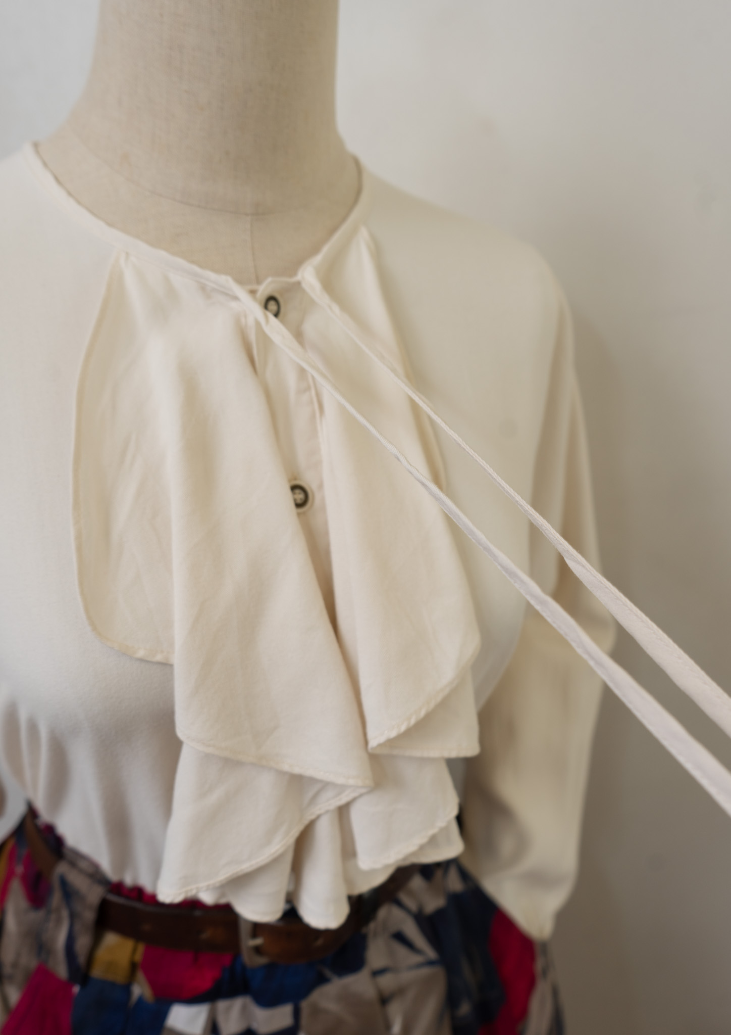 80~90's Bow-tie × Jabot Like Collar Ivory Blouse