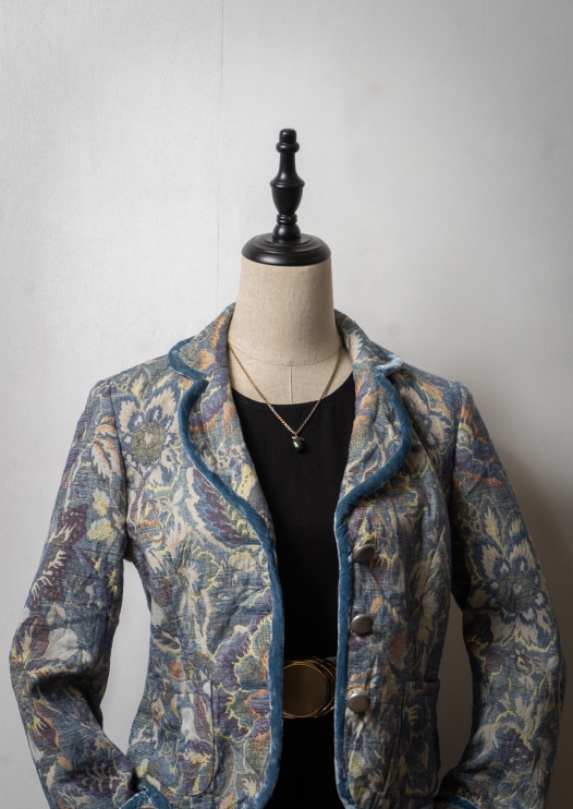 90's Double Pocket Design Botanical Blue Jacquard Jacket
