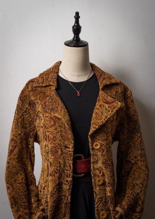 80~90's Euro Black Button Design Yellow Ocher Poncho Coat
