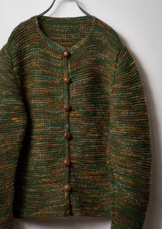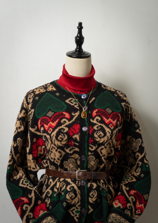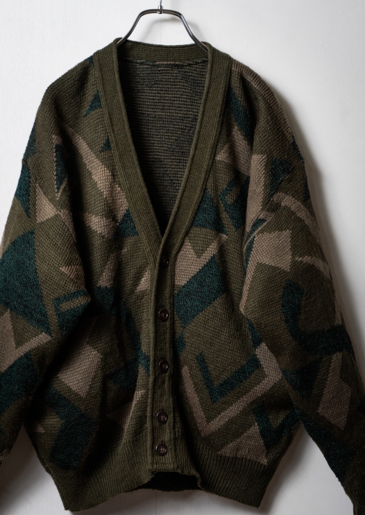 80~90's Art Pattern Moss Green Cardigan