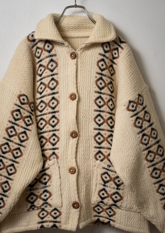 80's Nordic Pattern Ivory Knit Cardigan