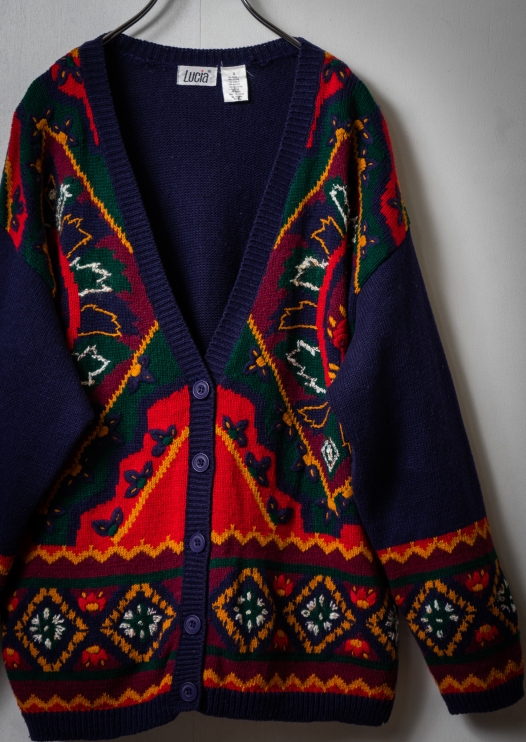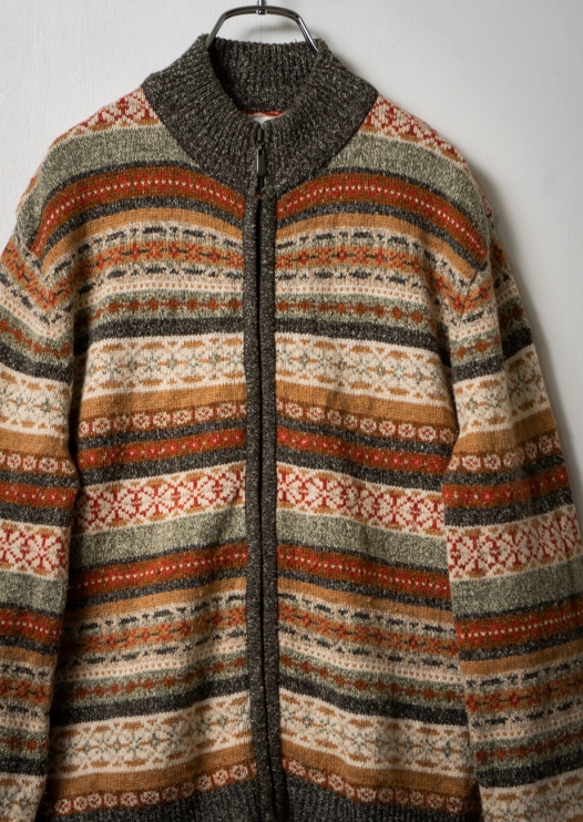 90's Nordic Pattern Zip Cardigan