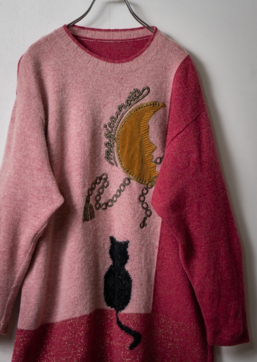 90's Cat × Moon Point Lame Design Pink Sweater