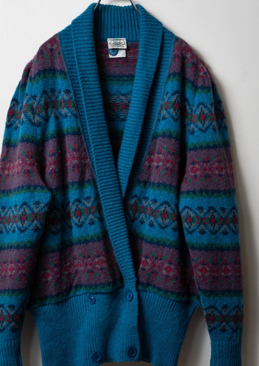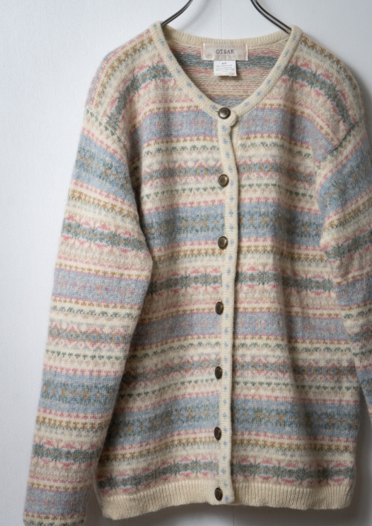 90's Pale Tone Nordic Pattern Wool Cardigan