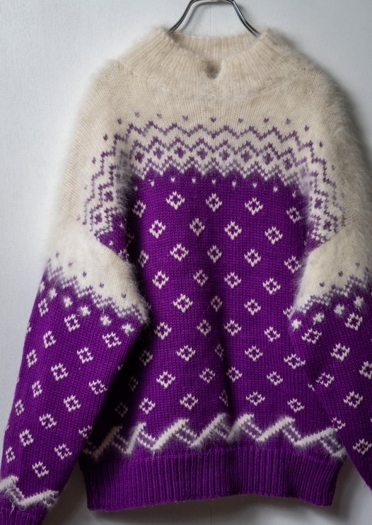 80~90's Botanical Like Geometry Angora Mix Sweater