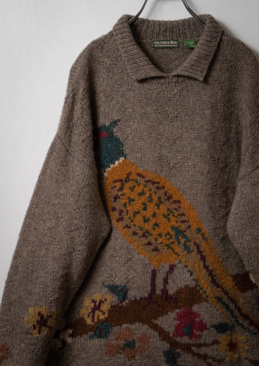 80~90's Bird Pattern Polo neck Sweater