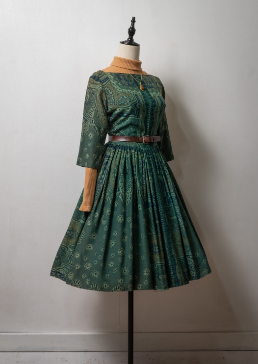 50's Jonathan Logan Scarf Like Pattern Green Dress