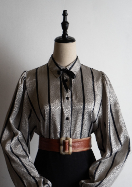 90's Euro Black Stripe Glossy Gray Ribbon Blouse