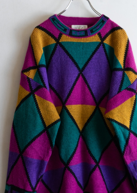 80's Bordeaux × Turquoise Art Pattern Skirt