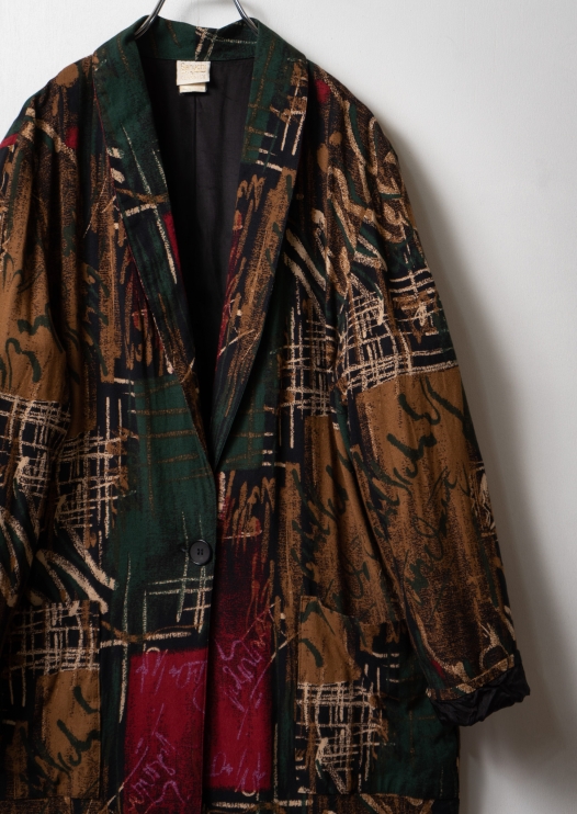 80's USA Double Pocket Design Botanical Jacquard Like Pattern Mustard Coat