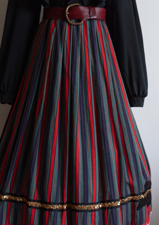 80's Euro Gold Sequins Line Design Multi Stripe Pattern Tyrol Skirt