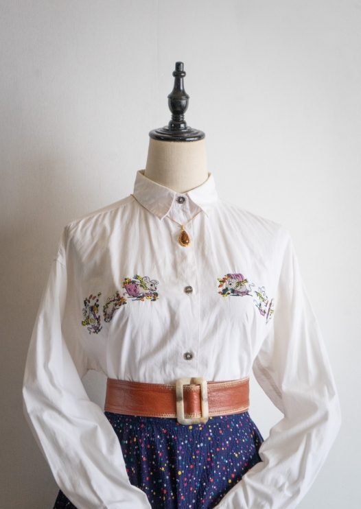 80's Flower Embroidery × Eyelet Lace Design Pale Purple Blouse