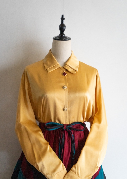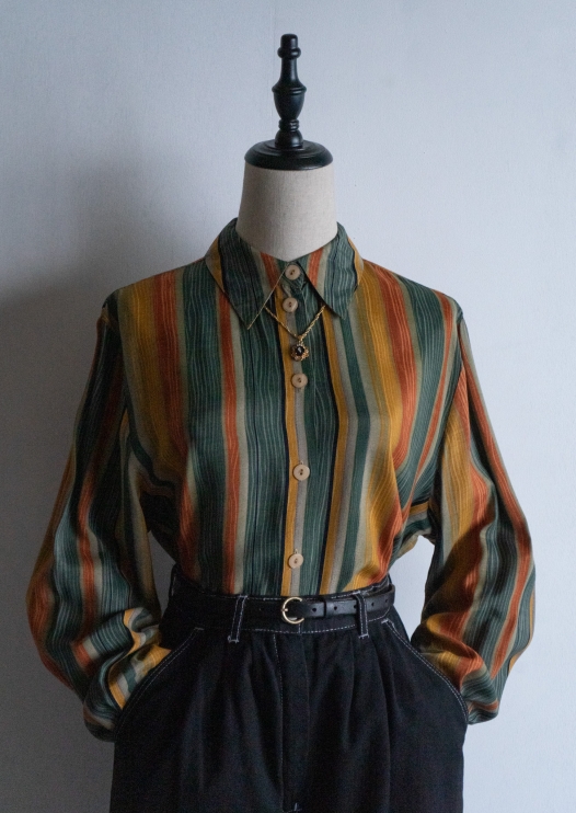 70's Pastel Yellow×Blue Stripe Pattern Blouse
