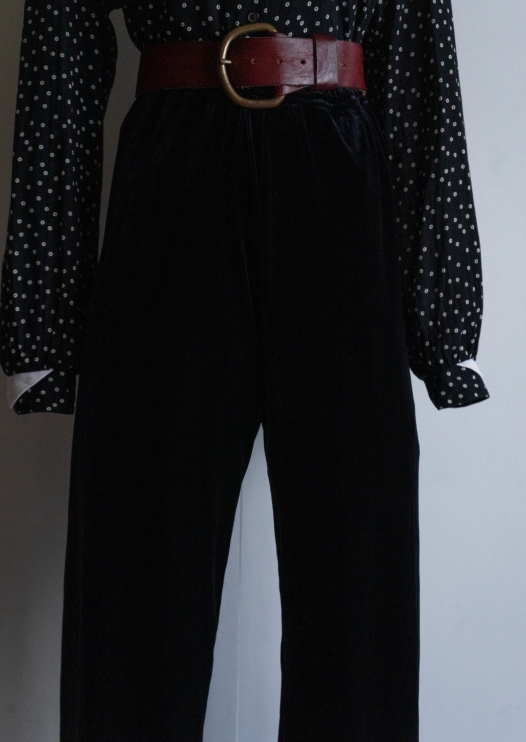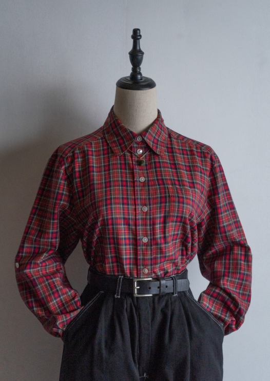 80's USA Point Leaf Red × Brown Bicolor Cropped Blouse