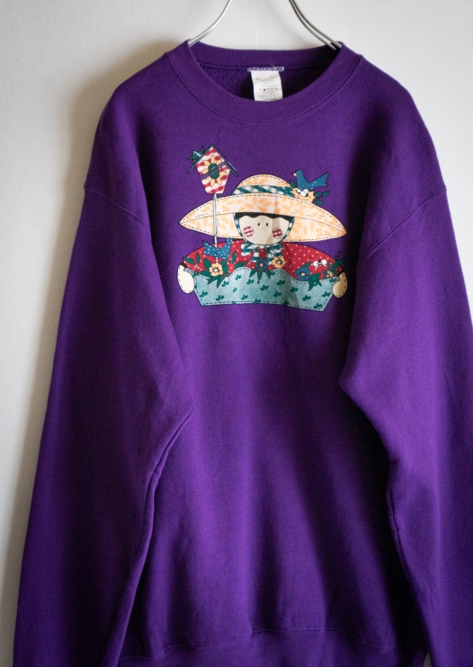 80's Red Woman & Hat Patch Purple Sleeveless Cropped Blouse
