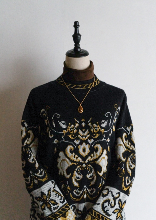 80~90's Euro Coin Chain Design Black Over dye Tyrol Skirt