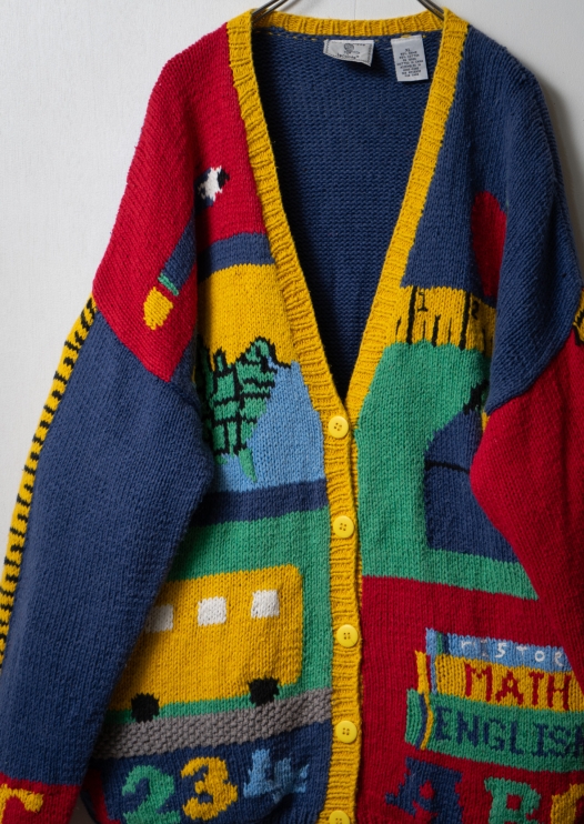 80’s Ireland Colorful Nep Orange Red Fisherman Cardigan