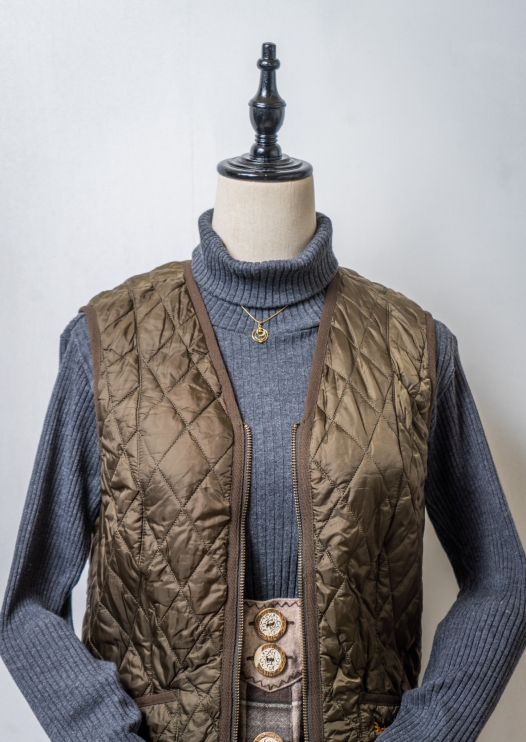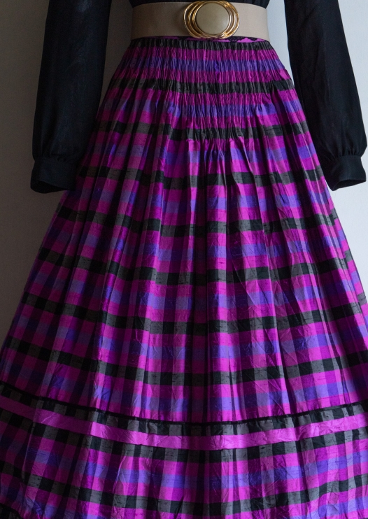 90's Euro Front Uique Big Button Design Check Pattern Brown Tyrol Skirt