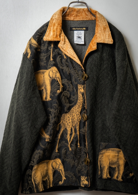 90's Canada Pocket Design Animal Gobelin × Corduroy Pattern Jacket