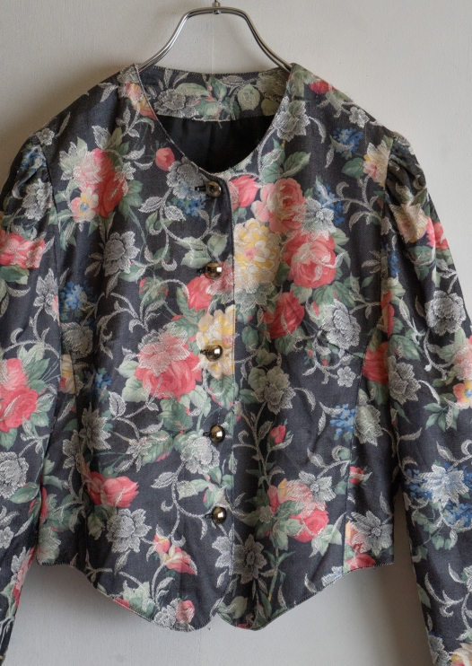 80~90's Euro Double Pocket Design Flocky Dot Pattern Black Jacket