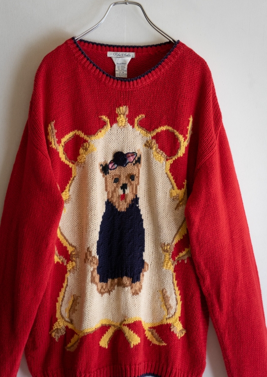 90's Dog Pattern Red Cotton Blend Sweater