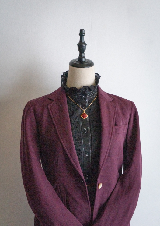 70~80's Blue Stitch Brown Over dye Stand Collar Dress