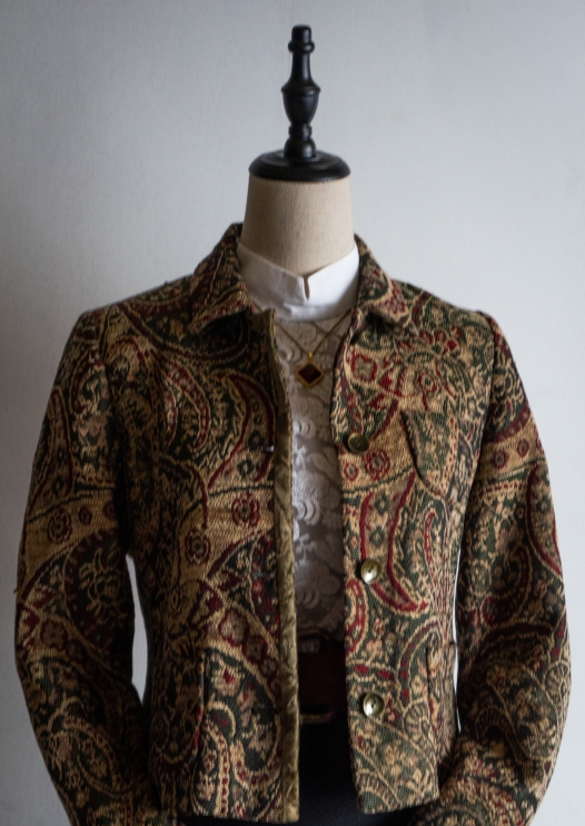 80's Dark Green × Beige Paisley Pattern Gobelins Jacket