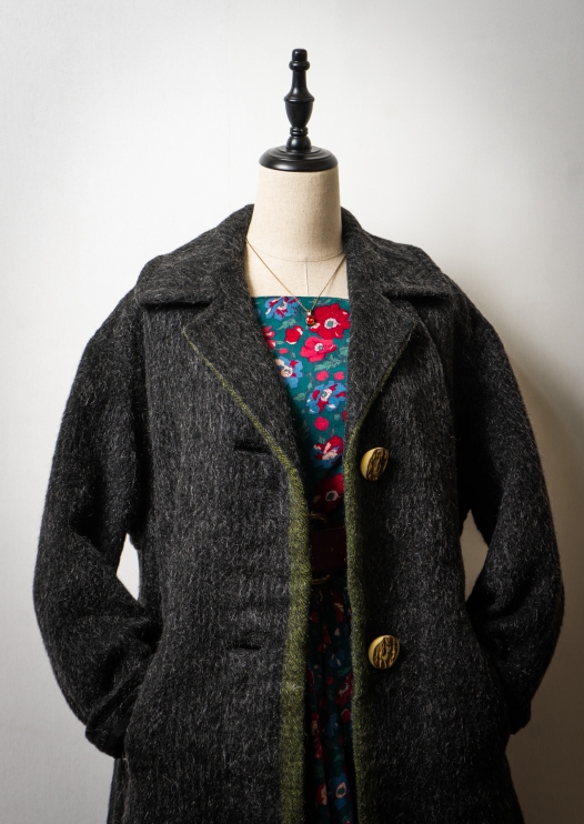 80's Big Button × Double Pocket Design Black Shaggy Tyrol Coat