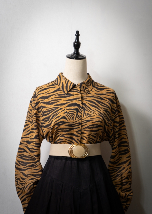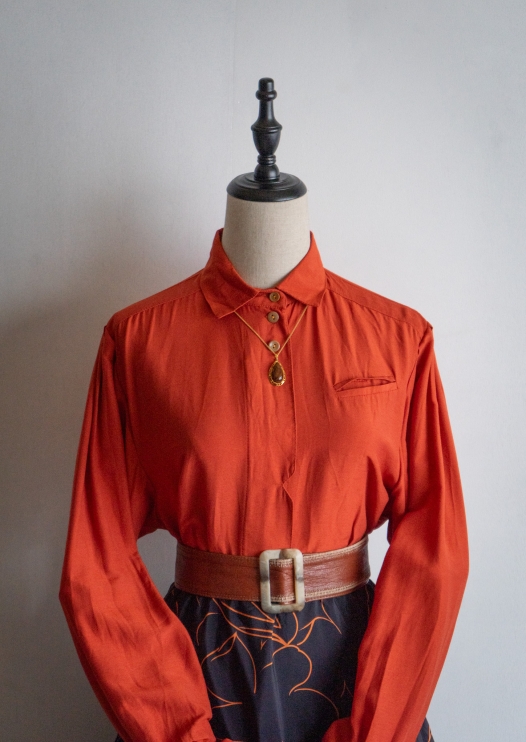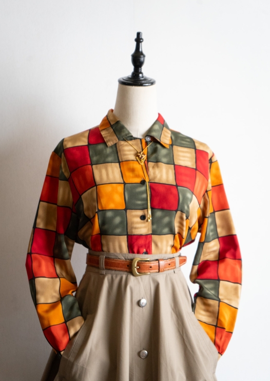 90's Stained glass Like Art Pattern Autumn Color Blouse