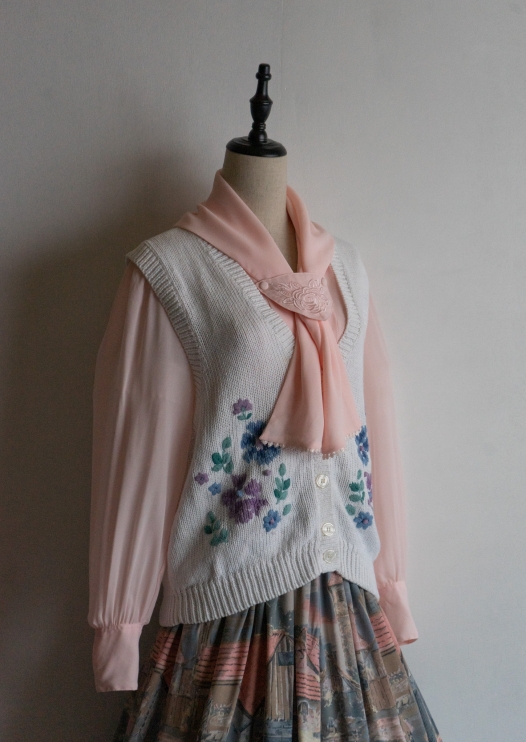 90’s Norway Smoky Blue × White Nordic Pattern Sweater