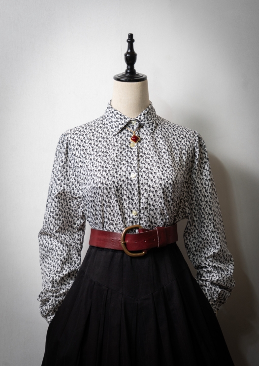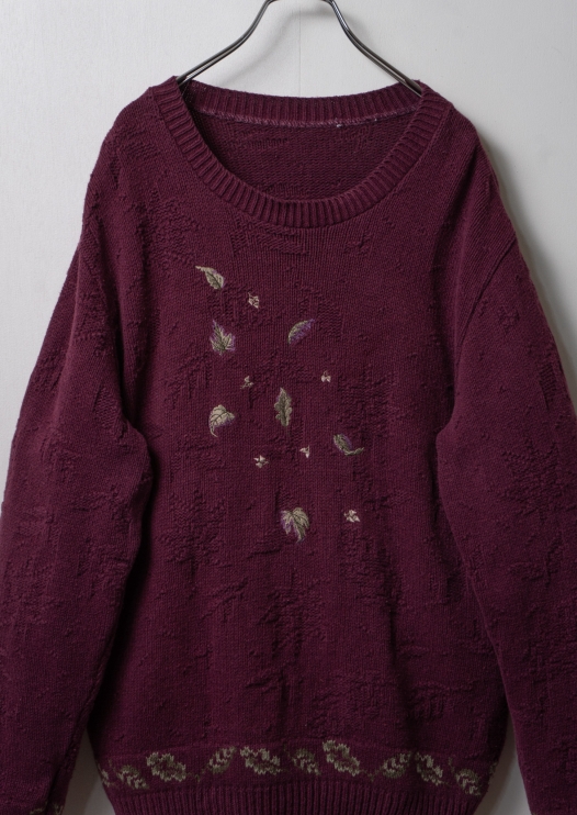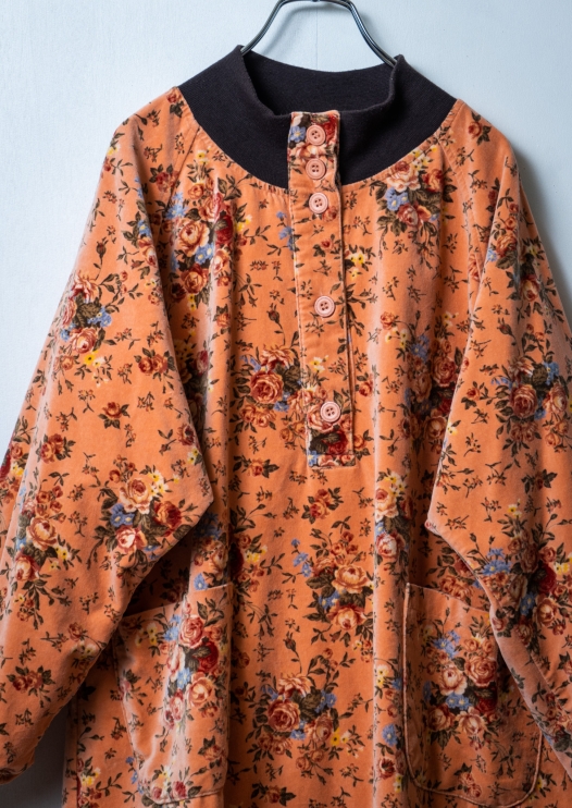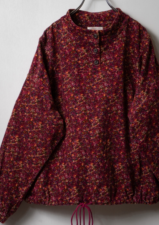 80's Botanical Pattern Bordeaux Corduroy Tops