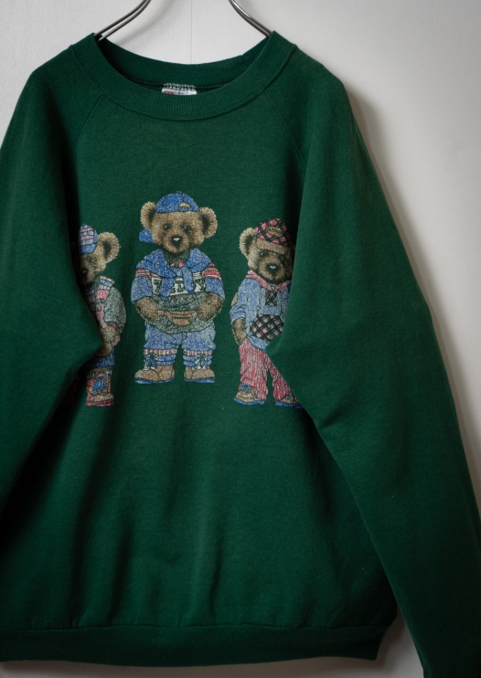 80~90's USA Hanes Three Bears Print Dark Green Sweat