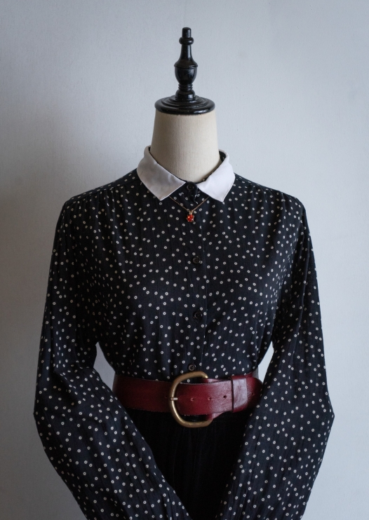 80's West Germany Star Motif Dot Pattern Navy Blouse