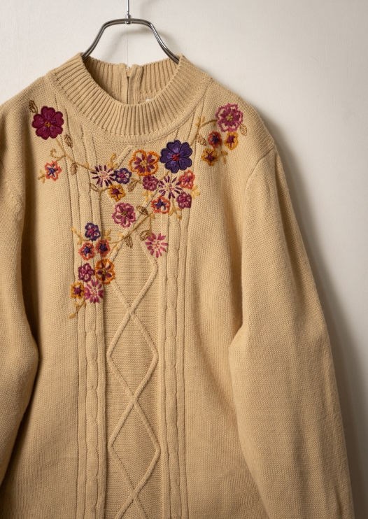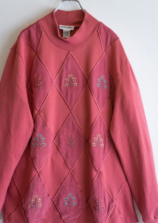 90's Diamond × Flower Embroidery Smoky Pink Swaet